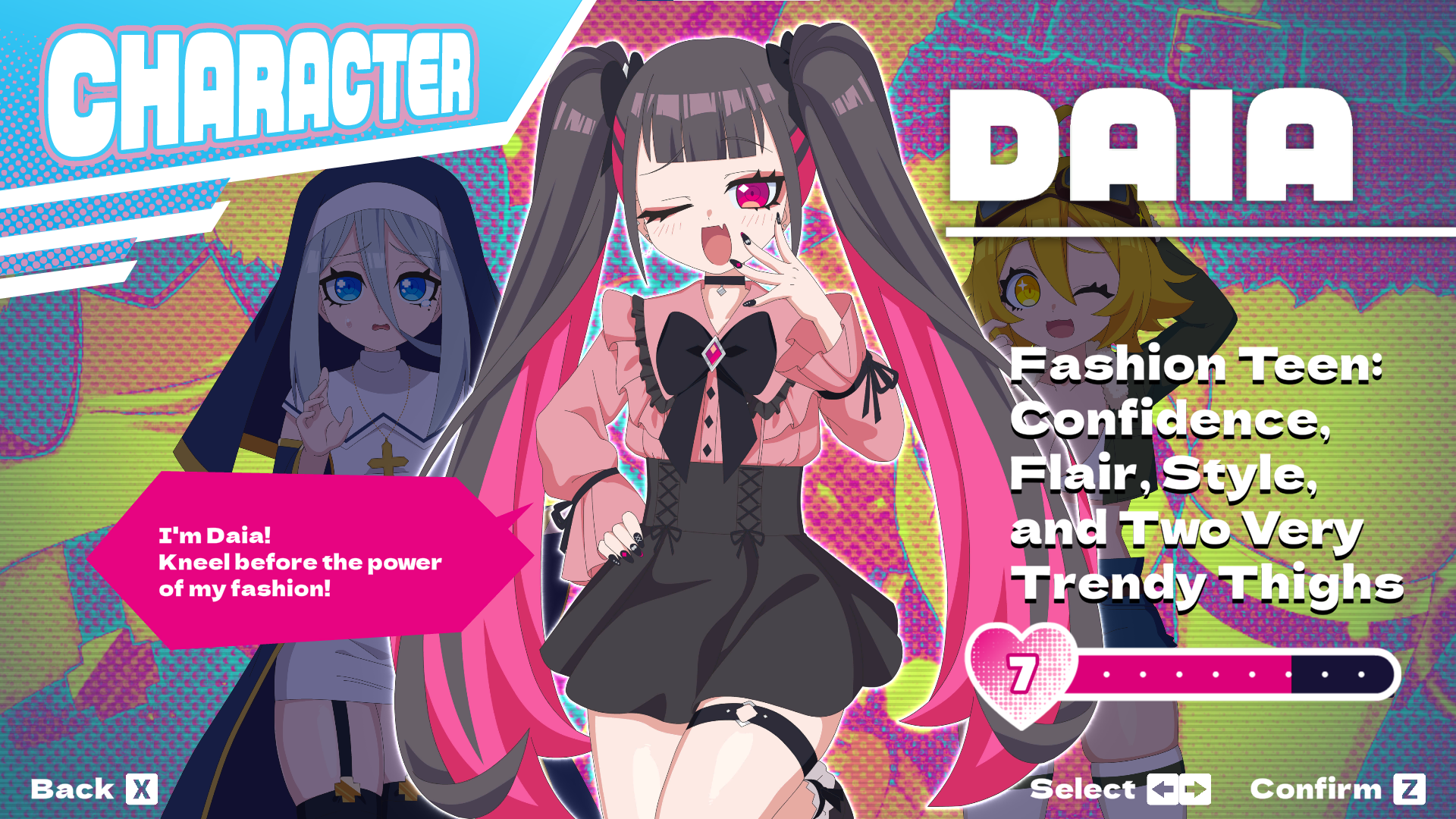 Daia, the "Jewel Girl" who shines with confidence and style! To her, "KAWAII" (cuteness) is justice and the ultimate form of self-expression. Wielding her perfectly toned "Thighs" as weapons, she fights and dazzles day in and day out to paint the world in her unique vision of "KAWAII"! Her goal: to become the president of the No.1 brand. No one can stop her ambition!