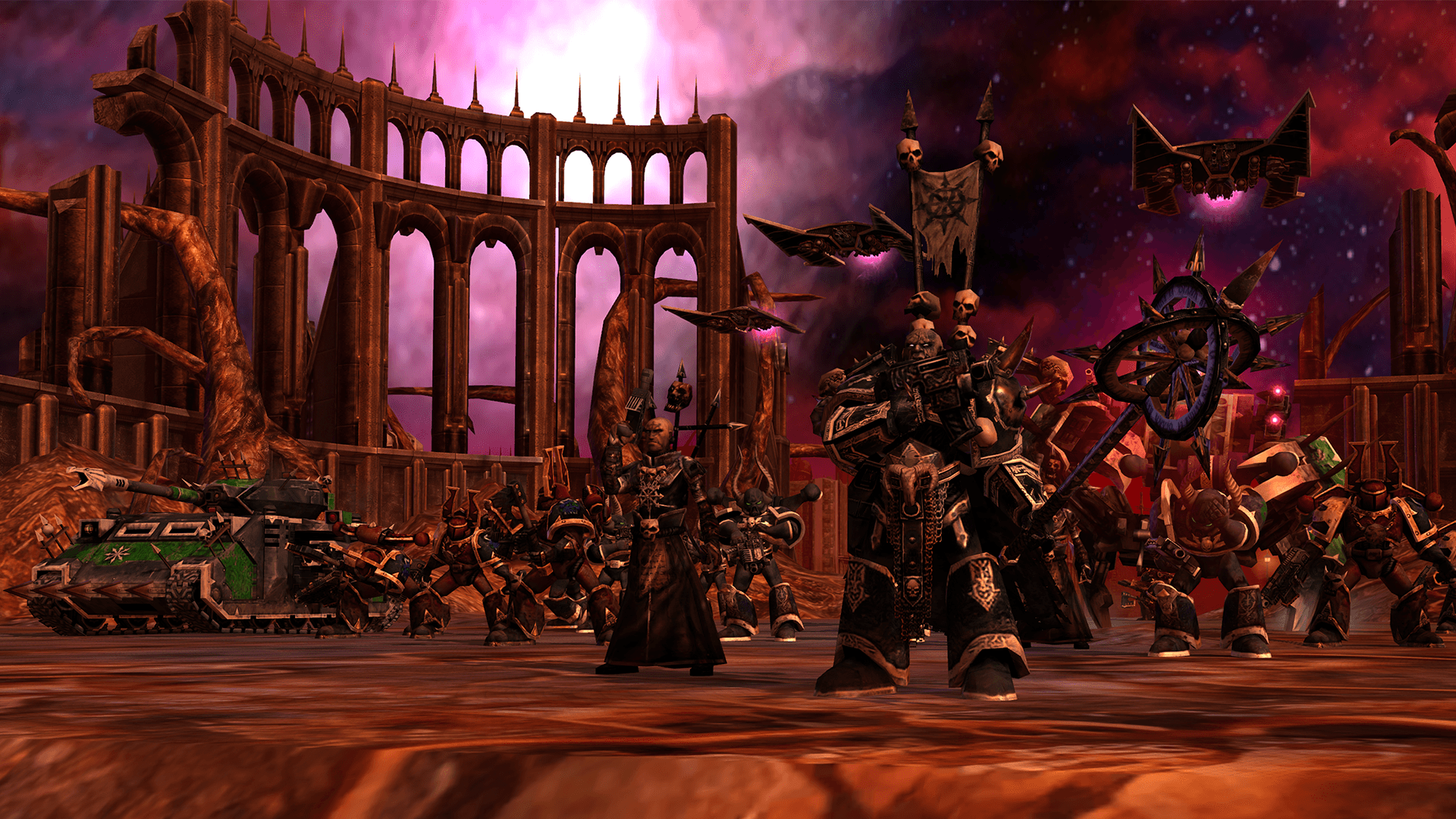 Conquer the planet Kronus during the Dark Crusade, a non-linear strategic campaign playable as classic Space Marines, Imperial Guard, Eldar, Orks, Chaos, Tau, or Necrons.