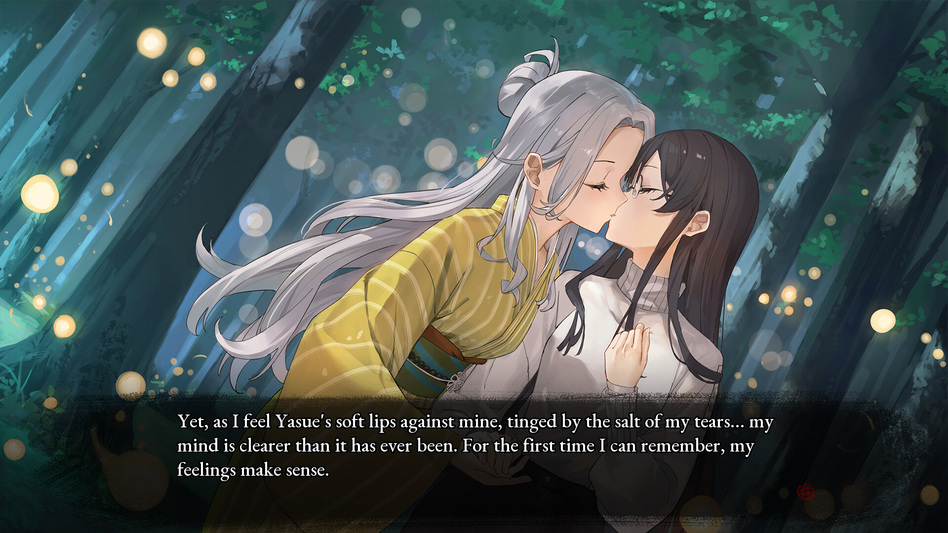 A dark yuri visual novel with themes around depression, a hidden magical art, and unexpected love from the depths of grief.