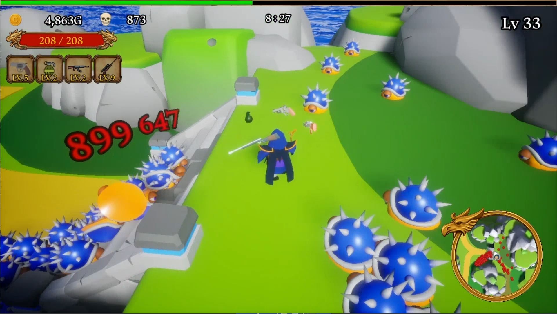 『Promiss9』 is a snake-like action game where you survive by using firearms to kill enemies that constantly approach you.