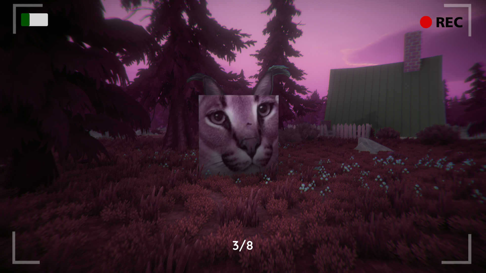 You have found yourself alone, in the middle of a vast dark forest. You need to explore this place to find 8 pictures of cats that are hidden somewhere here. But it's not that simple, because in fact there is someone else in this forest besides you, and he doesn't like your presence at all... If your screen gets disturbed, you'd better run away... Find the 8 pictures before Floppa finds you.