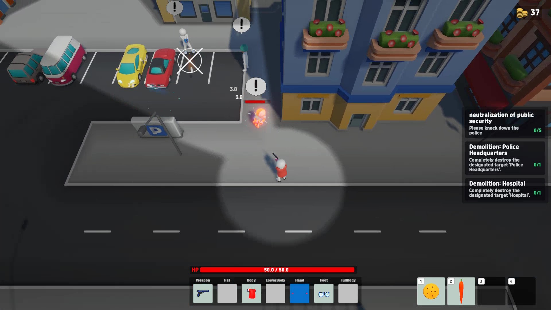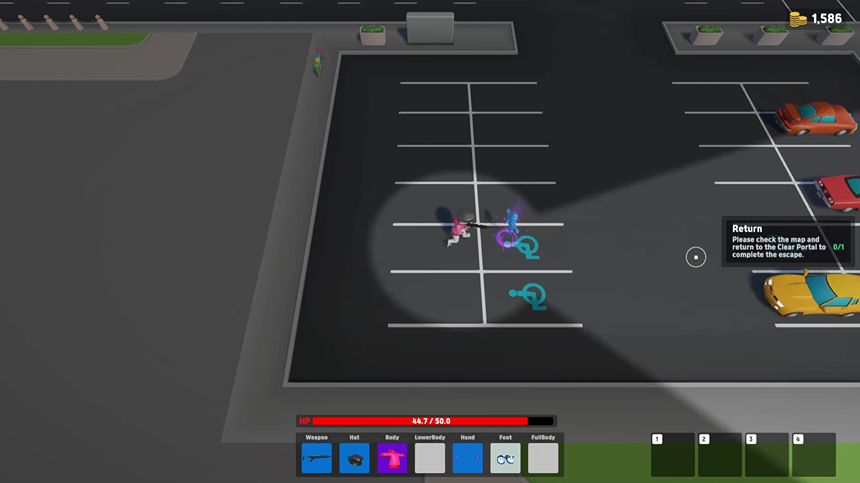 Smash Dash is a 3D top-down single-player PvE shooter.