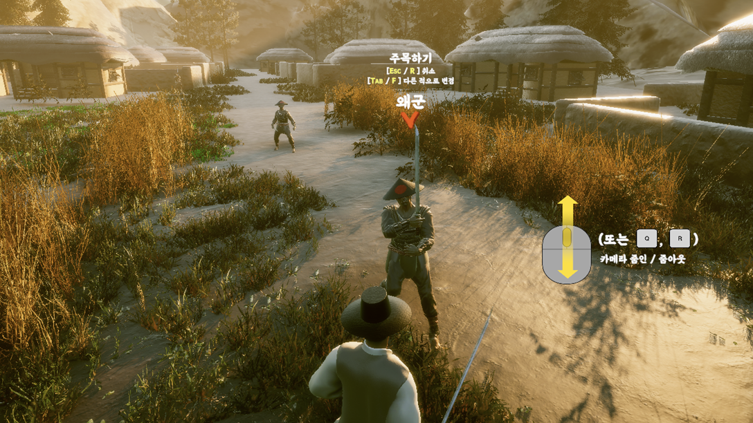 공격 대상을 지정하면 검을 8방향으로 휘두르거나 찌르기로 공격할 수 있다!상대의 검을 막고, 피하고, 베는 검술 본연의 재미를 느껴볼 수 있는 검술 액션 게임.왜구의 침략에 의해 멸망할 수 밖에 없는 운명에 놓인 조선을 검 하나로 구해내자!