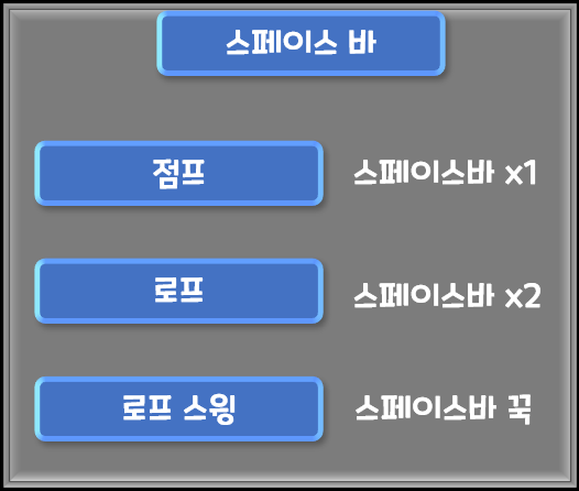 스페이스바를 이용해 점프를 하여 장애물을 피하고 스페이스바를 두 번 연타하여 천장에 걸려있는 전등에 마우스를 걸어 이단 점프가 가능합니다.