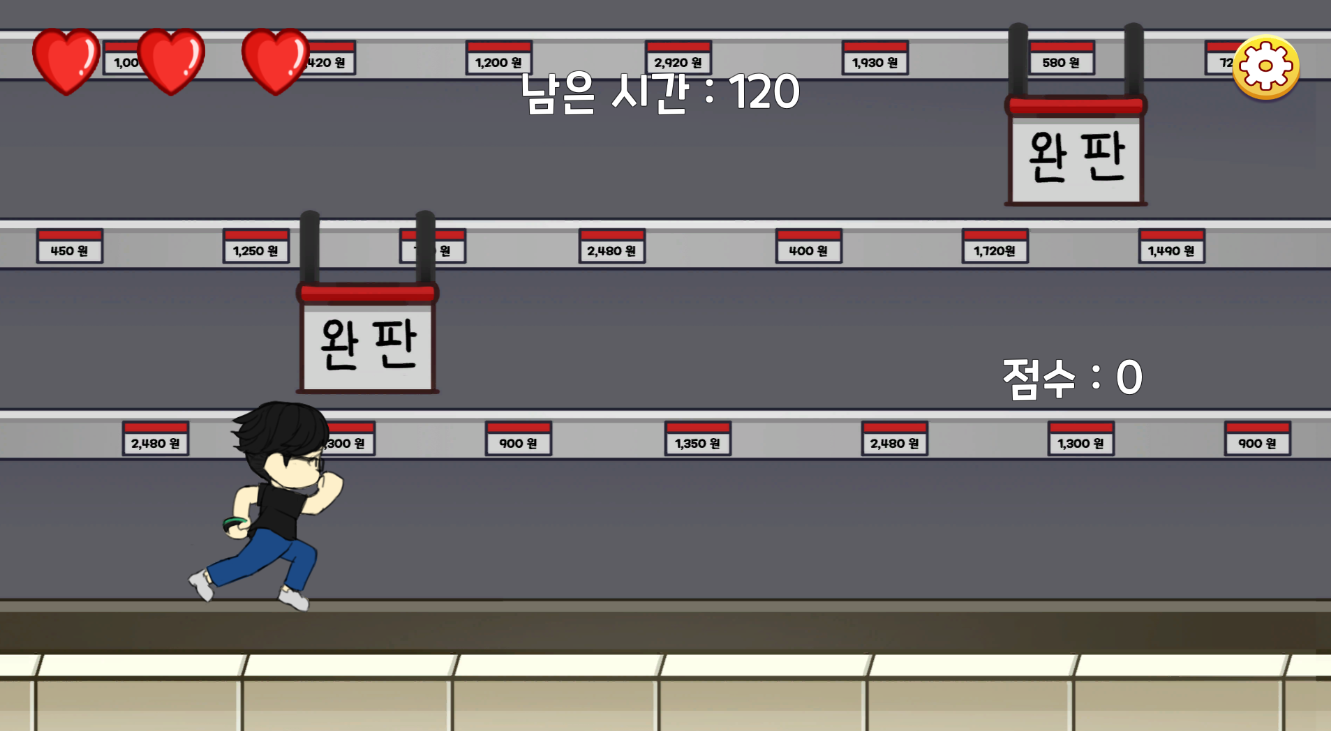 할인행사로 붐비는 마트에서 로프를 통해 장애물을 피하고 보급품을 모아보세요