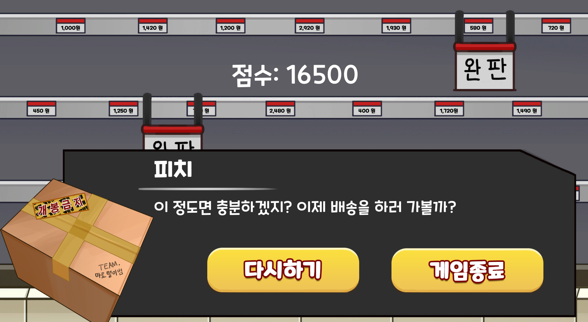게임잼 참가자들을 위해 물건을 구하기 위해 떠나는 우리의 피치님!