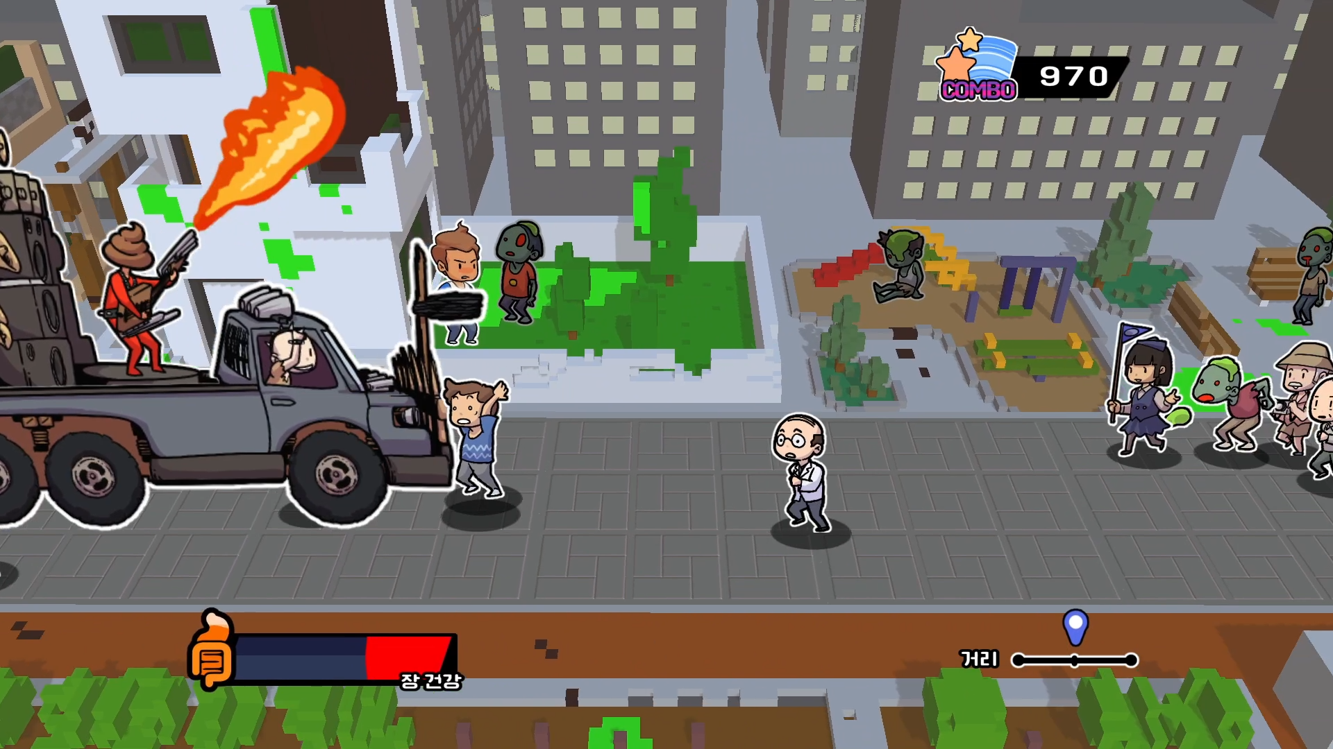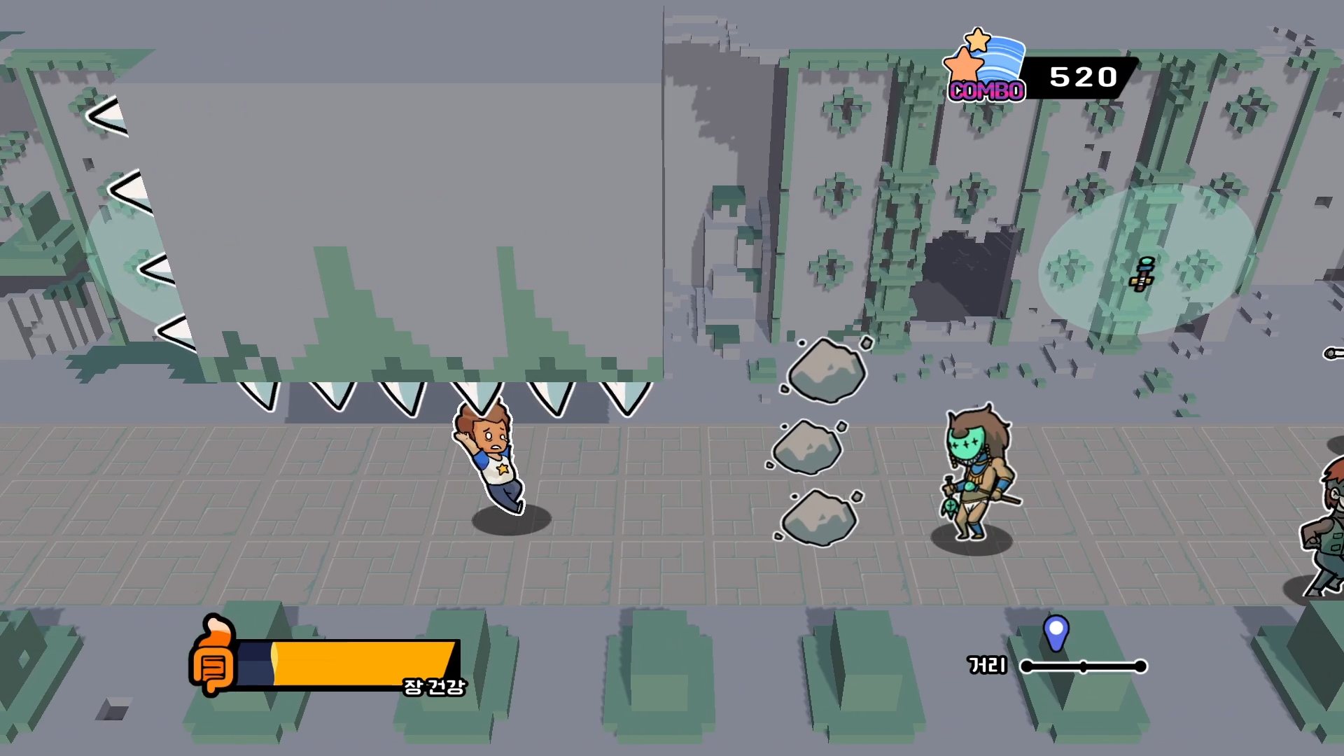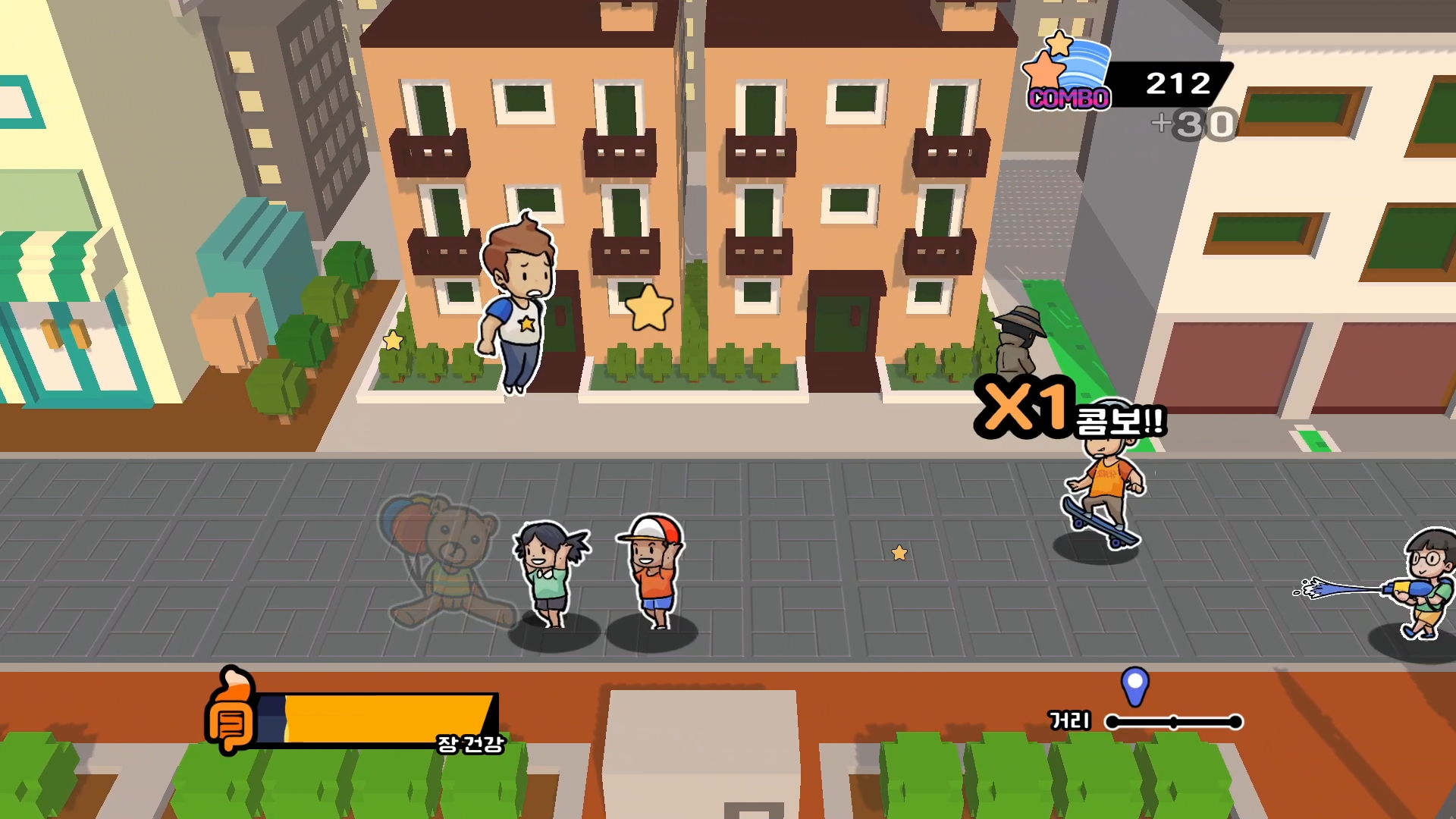 Beat out the villains through stomp, you get a combo bonus. Combo bonus can give you faster and invincible.
