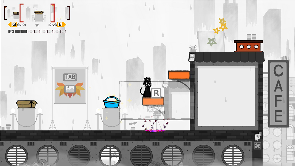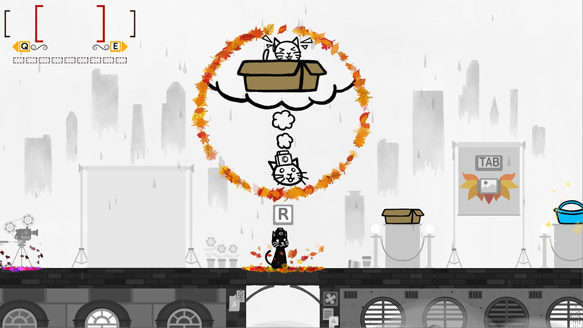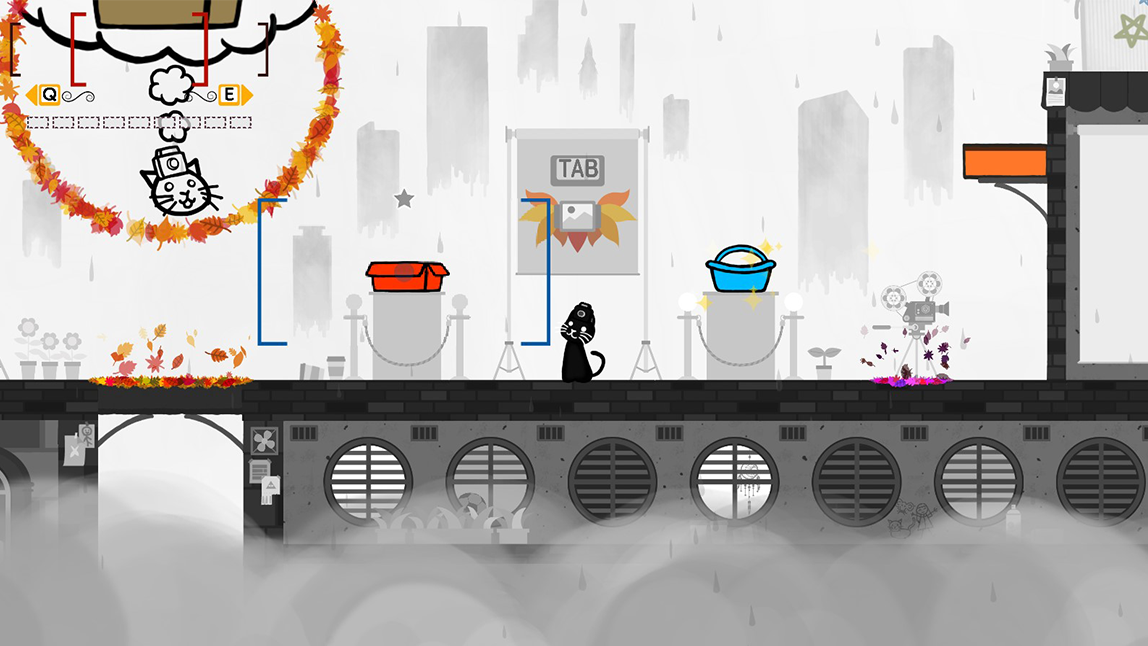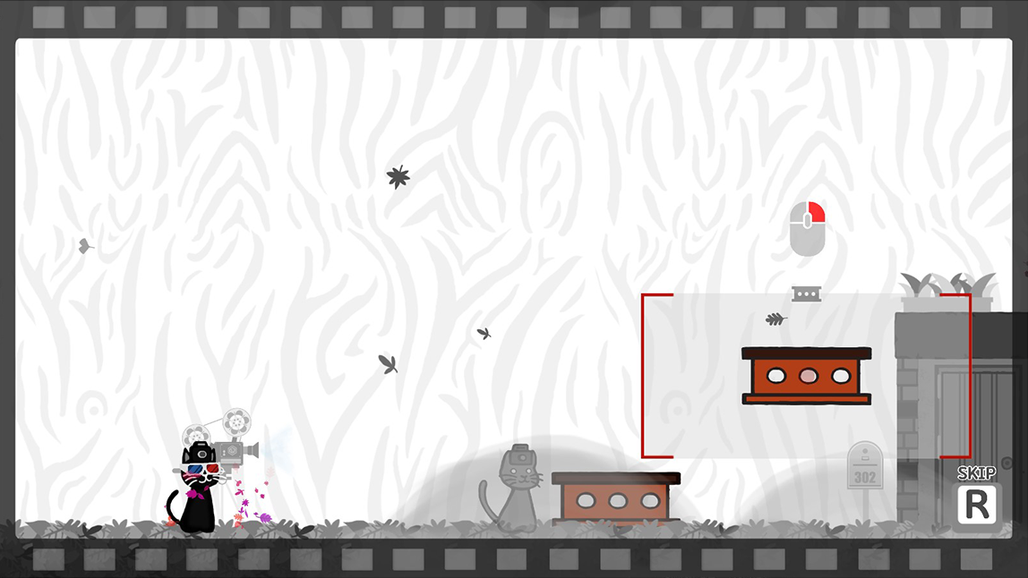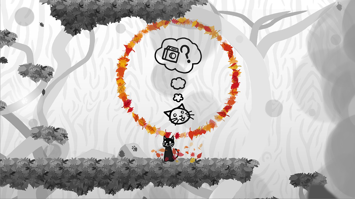Using the camera on the cat's head, players can take photos of various objects in the game.