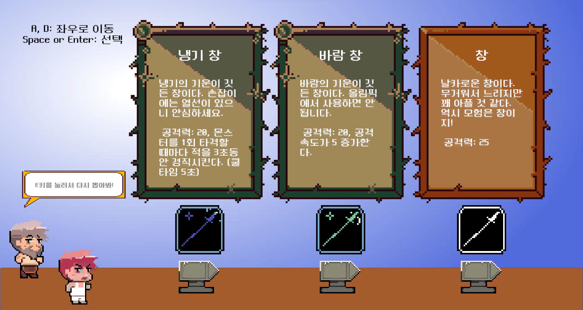 모험 시작까지 2턴! 적들의 공격을 버티게 해줄 장비를 골라주세요!