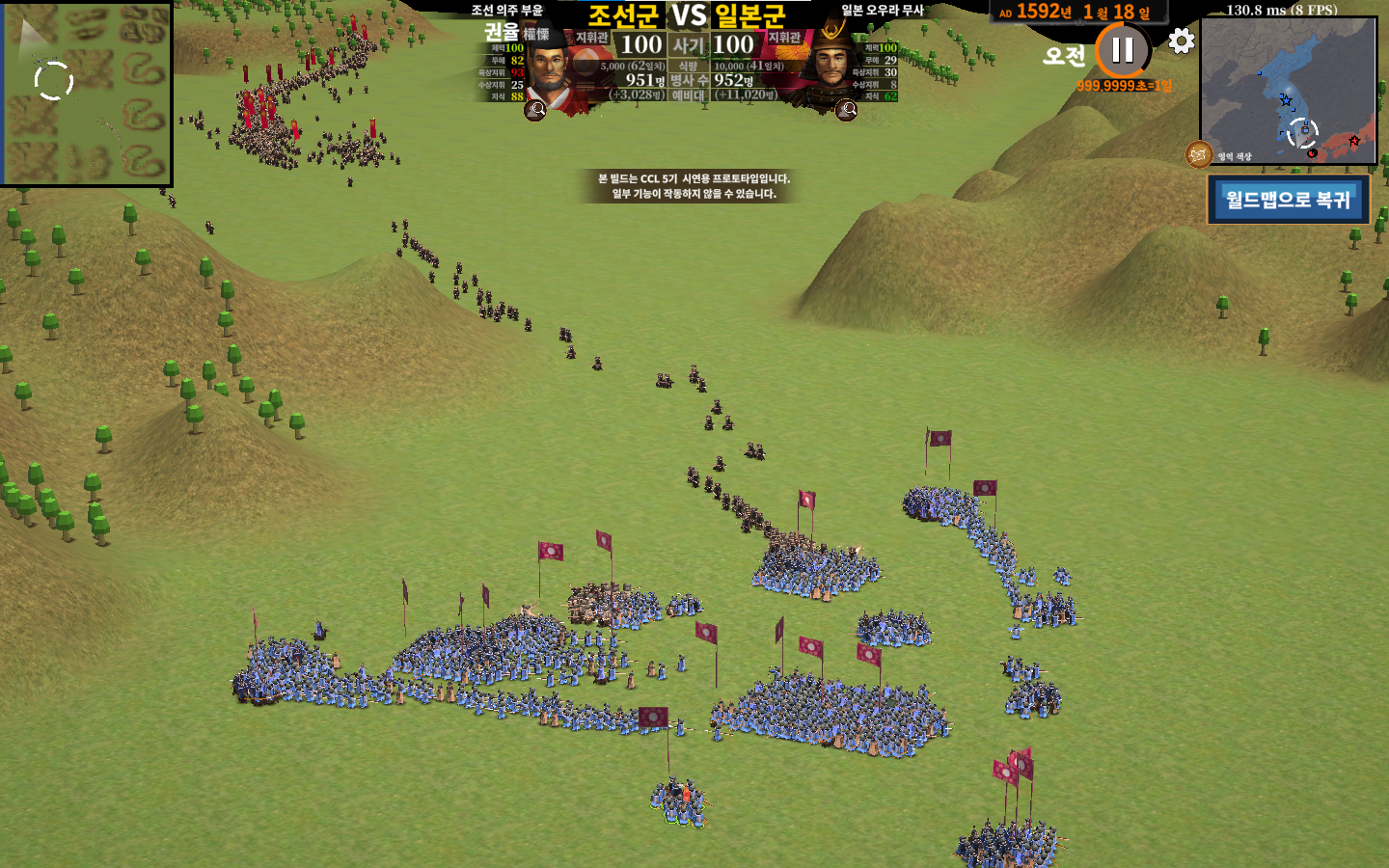 일본군의 침략에 순식간에 무너지는 조선의 강역.