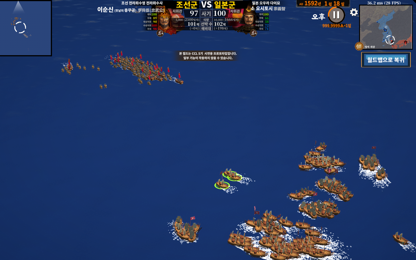 절대적으로 불리한 전황 속에서 이제 당신은 전라좌수사 이순신의 입장에서 불리한 전쟁을 뒤집기 위한 작전을 수행해야 한다.