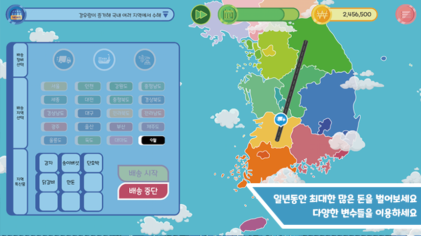 게임은 총 1년 동안 진행되며, 매달 수송 계획을 세우고 다양한 전략을 통해 수익을 극대화해야 합니다.
