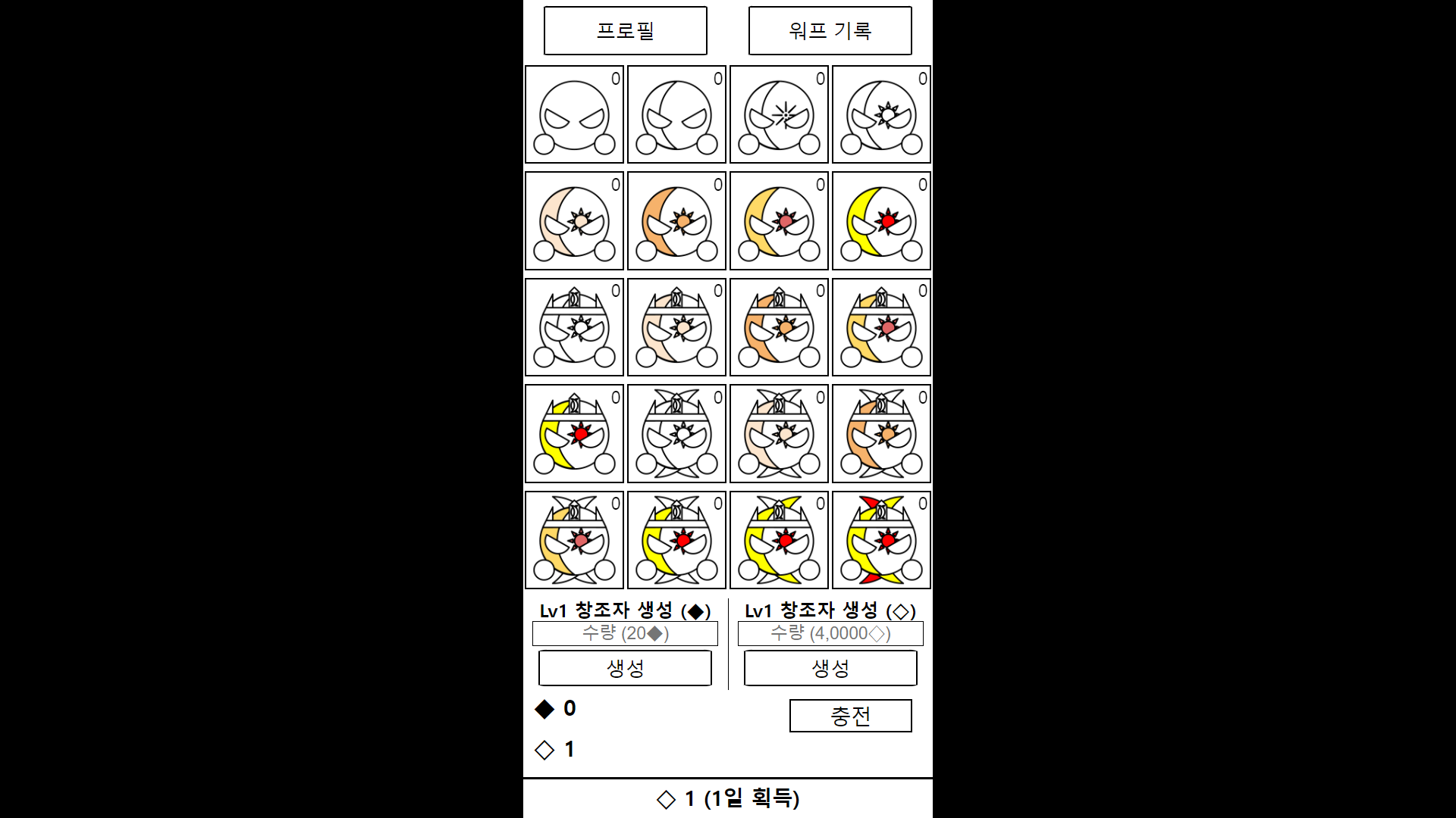 2. ◇빛이나 ◆어둠(캐시)으로 1단계 창조자를 생성할 수 있습니다.