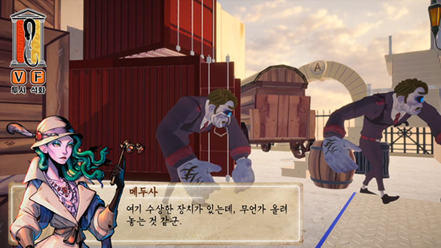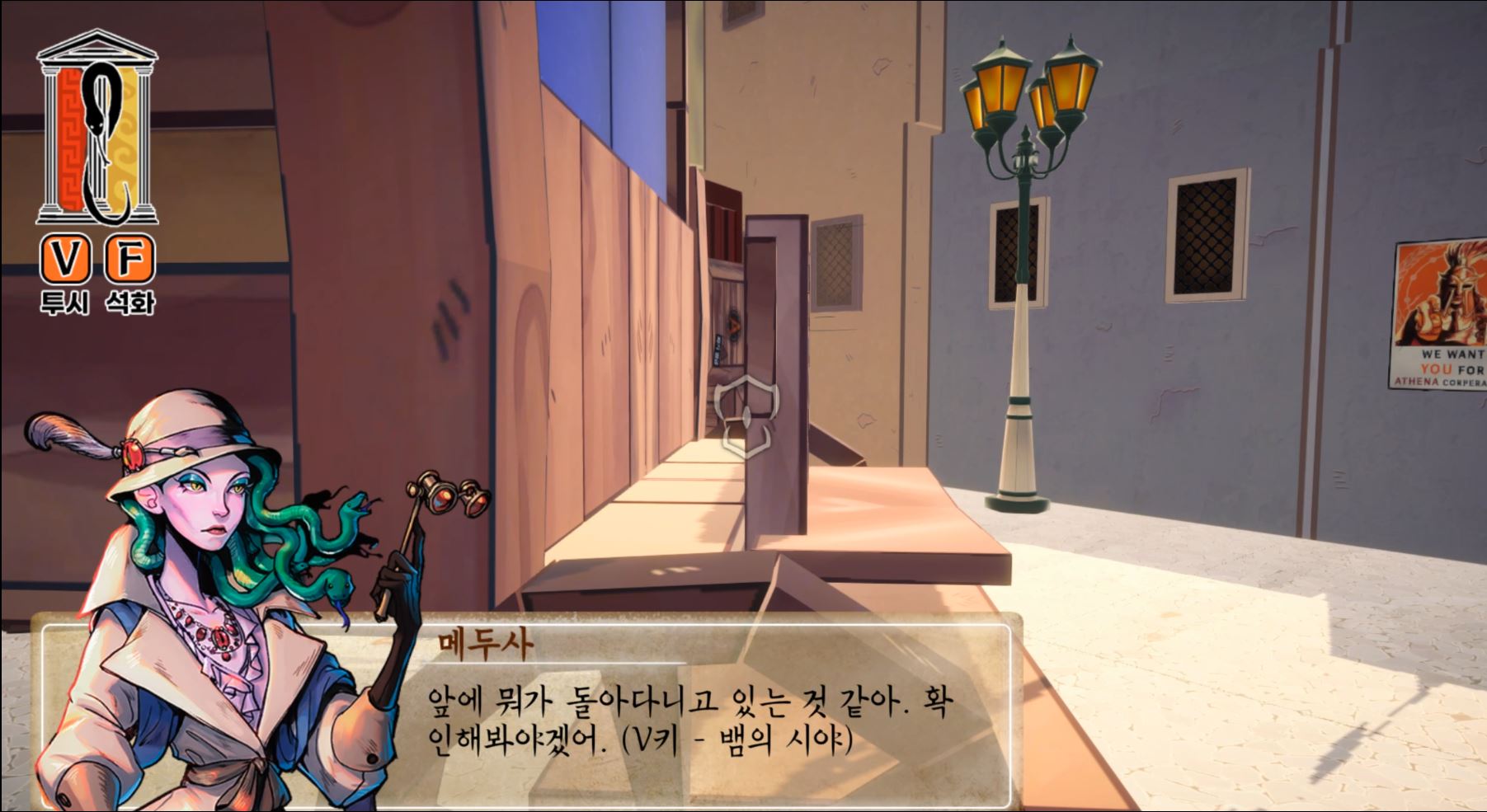 1920년대 그리스, 탐정 메두사가 되어 경비원 가득한 골목길을 돌파하세요.