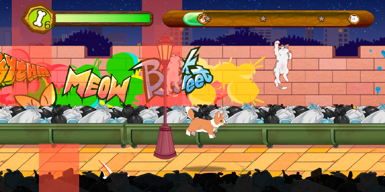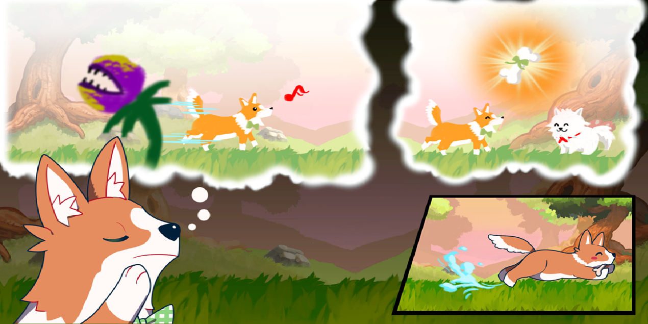 As the story of Rhythm Puppy is about 'Corgi' chasing 'Pom' on an adventure, we designed it to make players feel like they are exploring a new place, just like any other platform game. Players will have a lot of fun exploring places in the setting that are not familiar to most people, such as forests and back alleys.