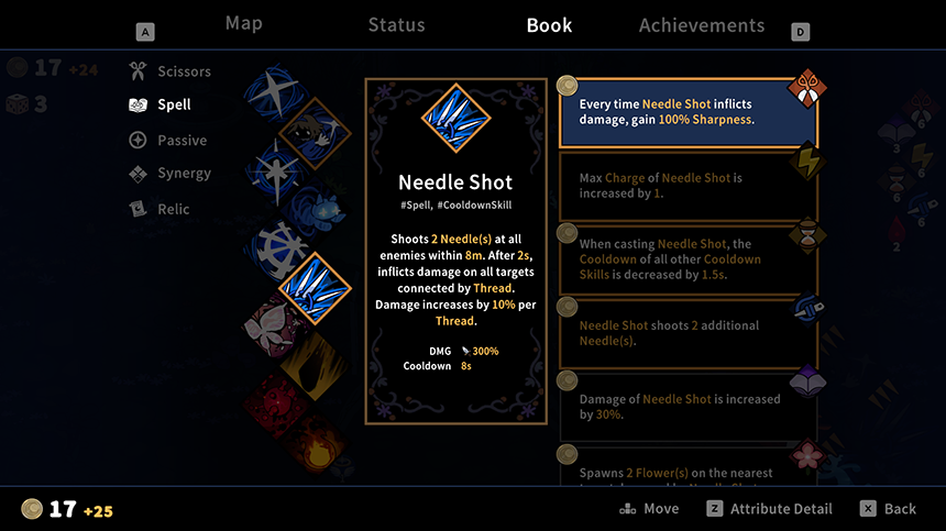 You play as Sil, the Thread Witch. Wield giant scissors to protect your precious sanctuary and persuade the other unruly witches to gather for the tea party. After each battle, you’ll face critical decisions, choosing spells, upgrades, and relics that define your playstyle. Harness the mysterious power of witches and “persuade” the other witches in the garden with your own unique and strategic combat style.