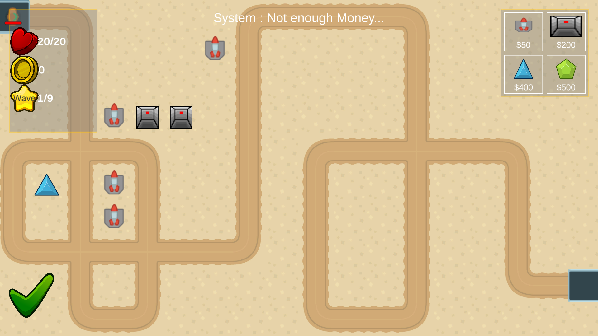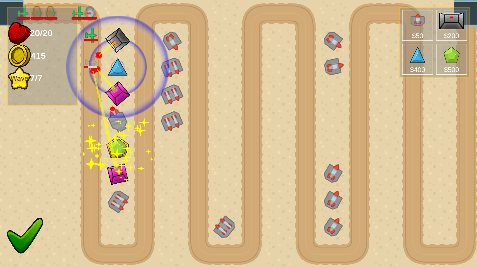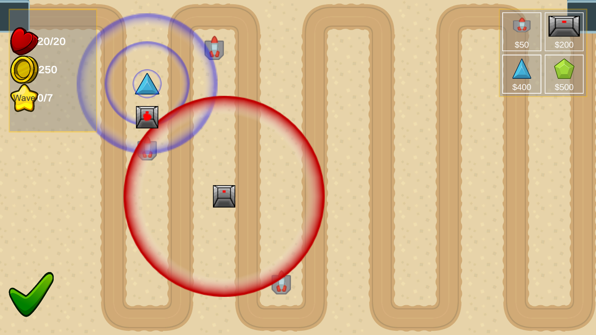 기본에 충실한 타워디펜스 게임입니다. 1스테이지는 튜토리얼로 돈이 많지만 나머지 스테이지는 도전해볼만한 난이도로 준비했습니다.