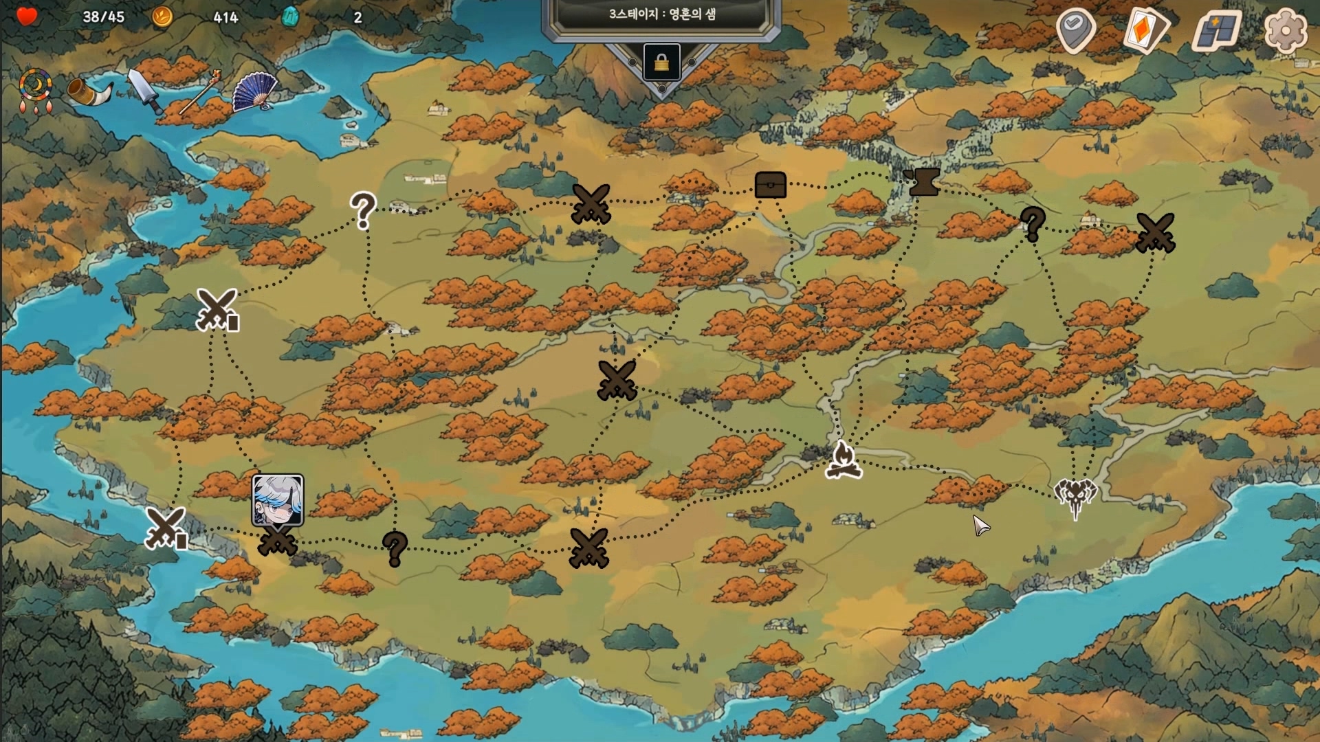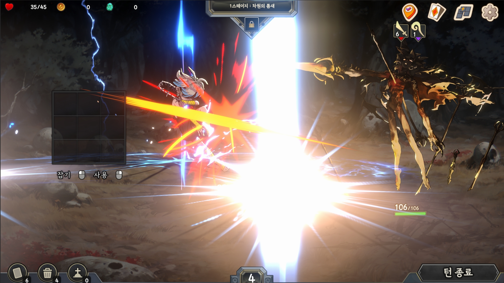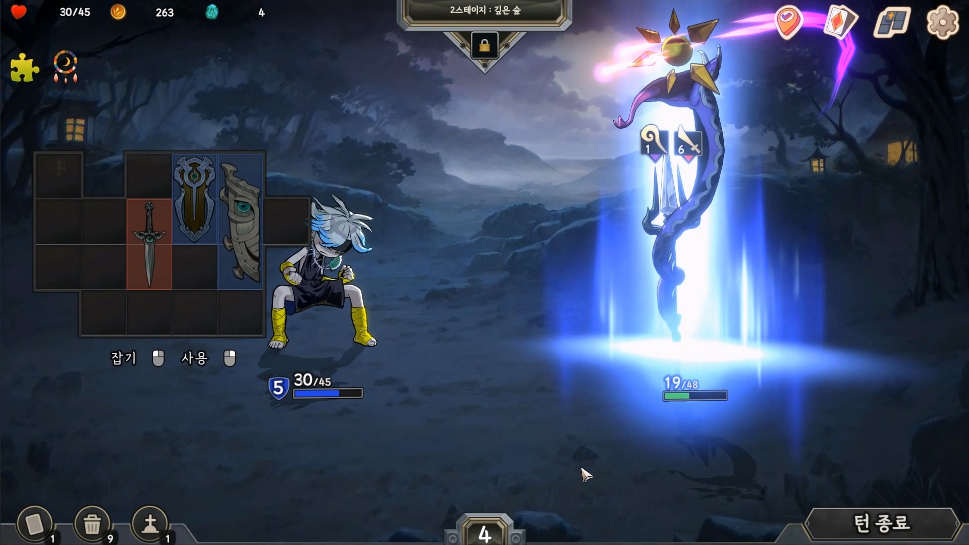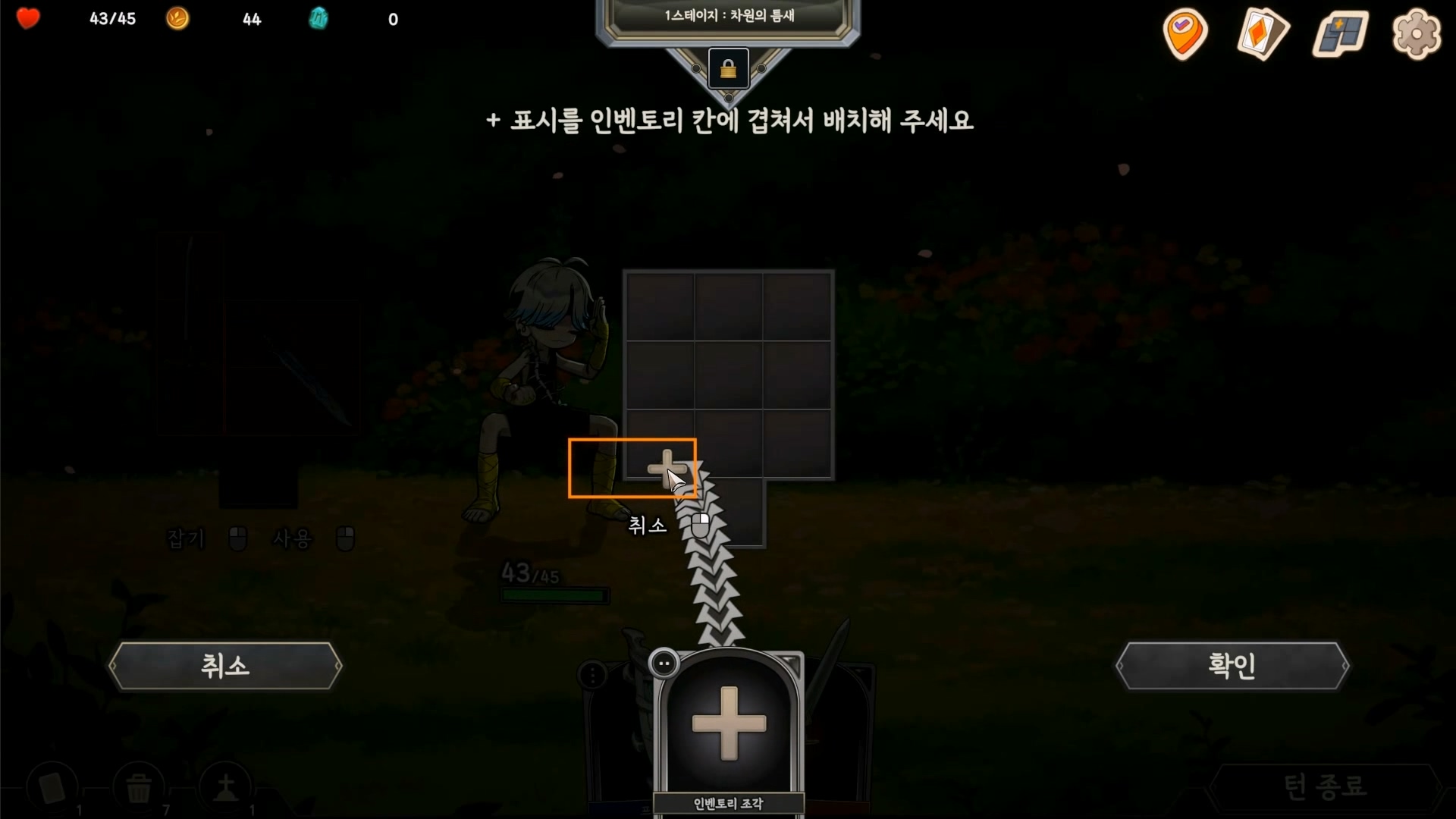 인벤토리를 계속 정리해 가며 최적의 구성을 턴마다 찾아야 합니다.