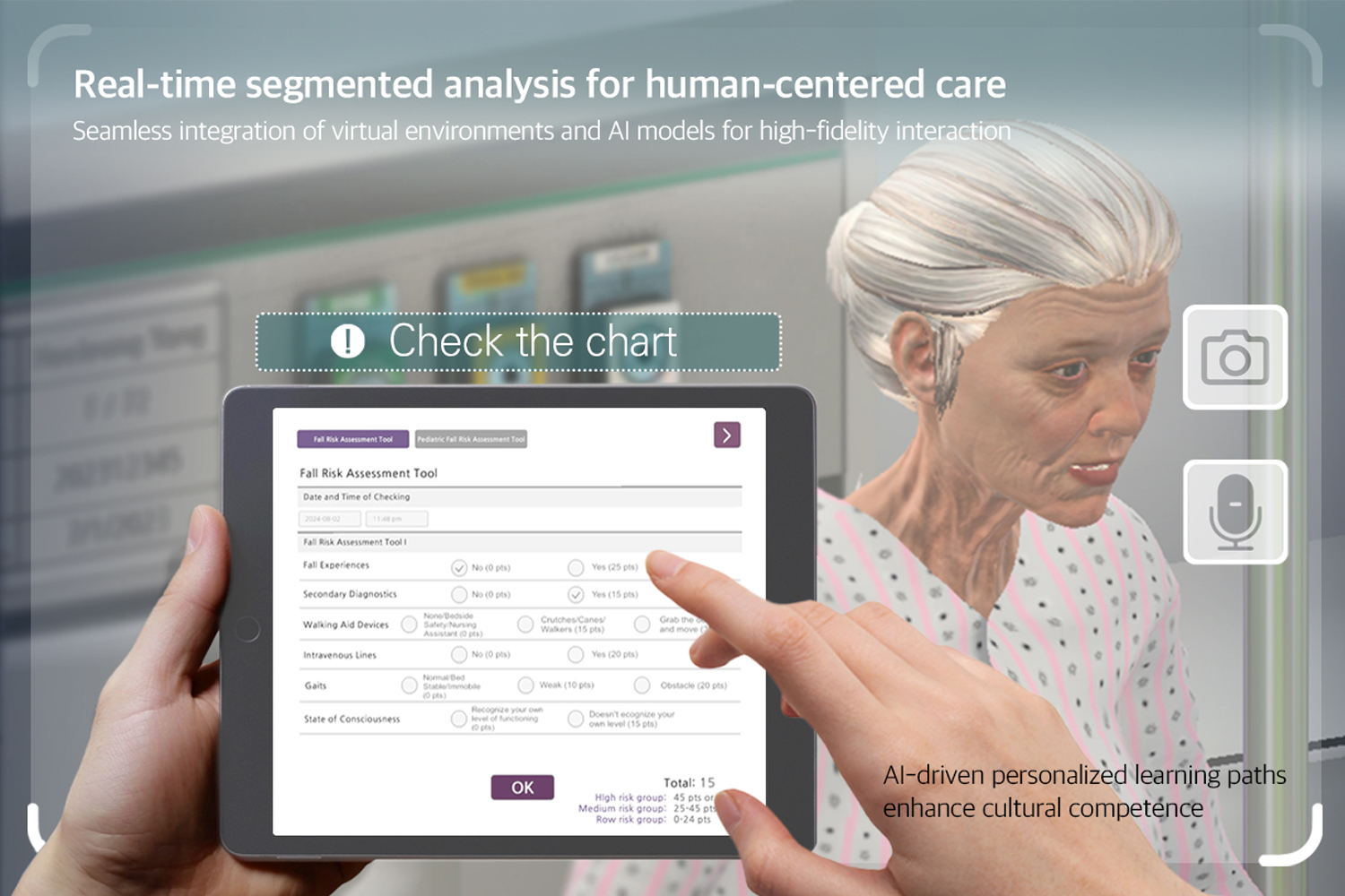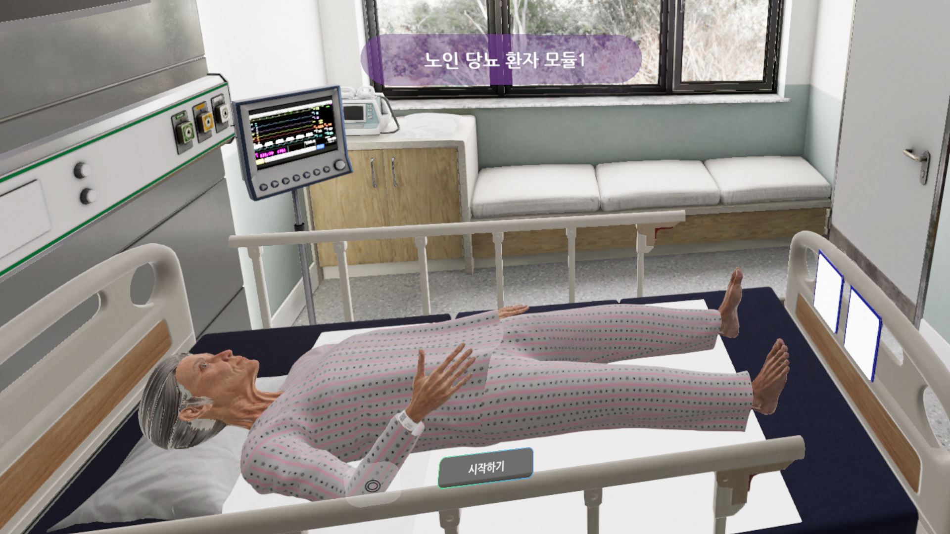 The immersive 3D environment replicates the atmosphere of a real hospital, allowing engaging learning experiences through patient interaction and medical equipment usage.K-SIM adapts to the learner's pace and needs with self-directed learning capabilities, maximizing learning outcomes with real-time feedback.Through diverse scenarios, users can systematically train for both routine nursing tasks and emergency situations.