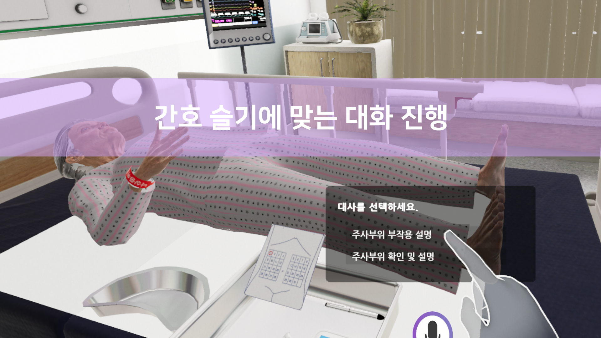 Based on advanced VR technology and utilizing hand-tracking interactions, it provides a safe virtual hospital environment for repetitive learning. The system is designed to practice precise skills and communication in a game-based framework.