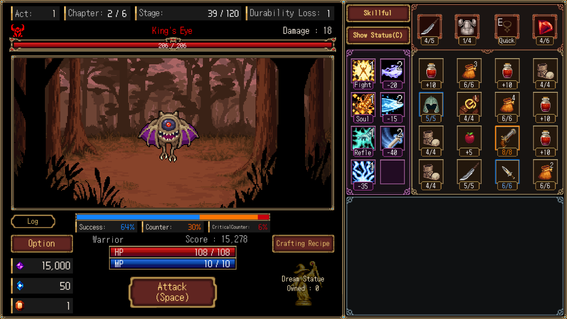 Since inventory slots are limited, your item management skills determine everything except luck.