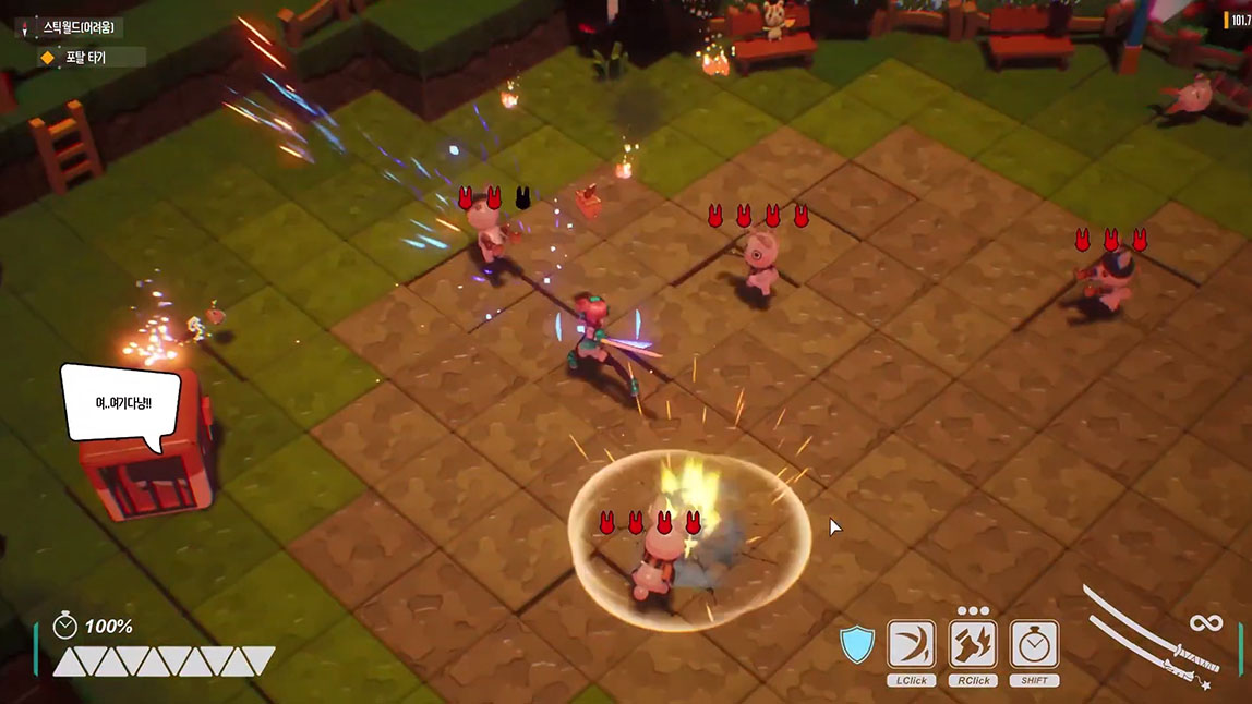 Defeat the rabbit pirates disturbing Stick World and rescue the kidnapped cat villagers!