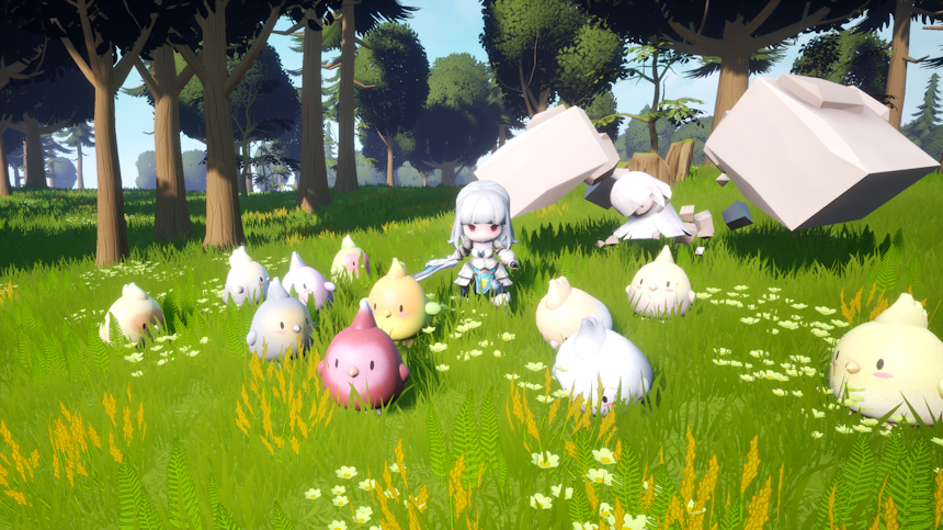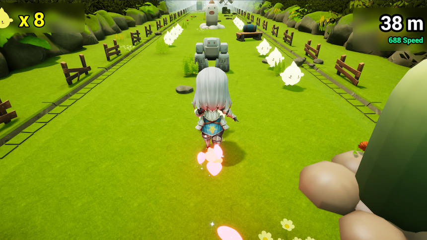 "The cute little chicks are being chased by monsters! Avoid obstacles and monsters to save them."