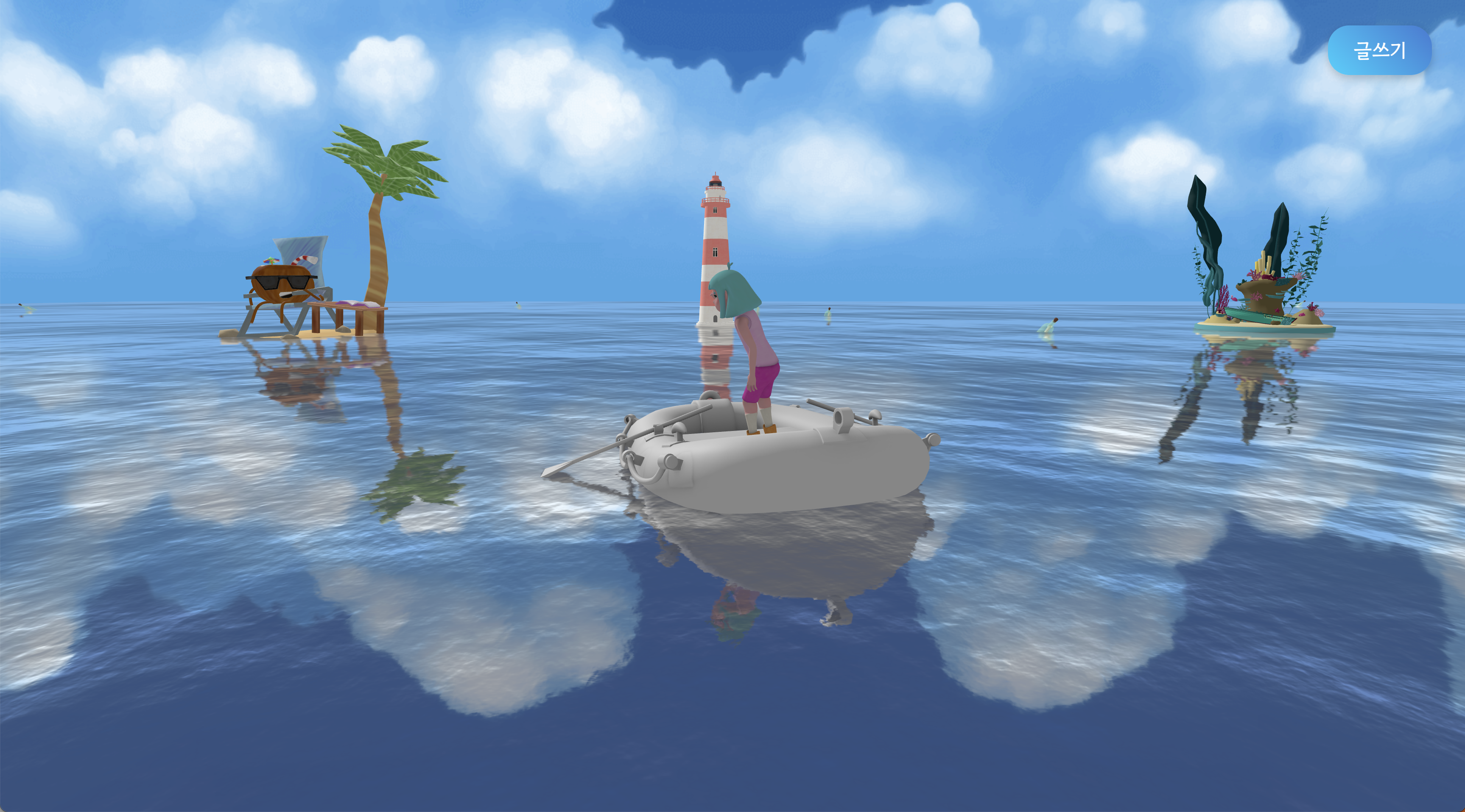 행운의 편지에서는 파도에 실린 해류병을 통해 나만의 이야기를 남기고, 다른 이들의 메시지를 만날 수 있습니다.