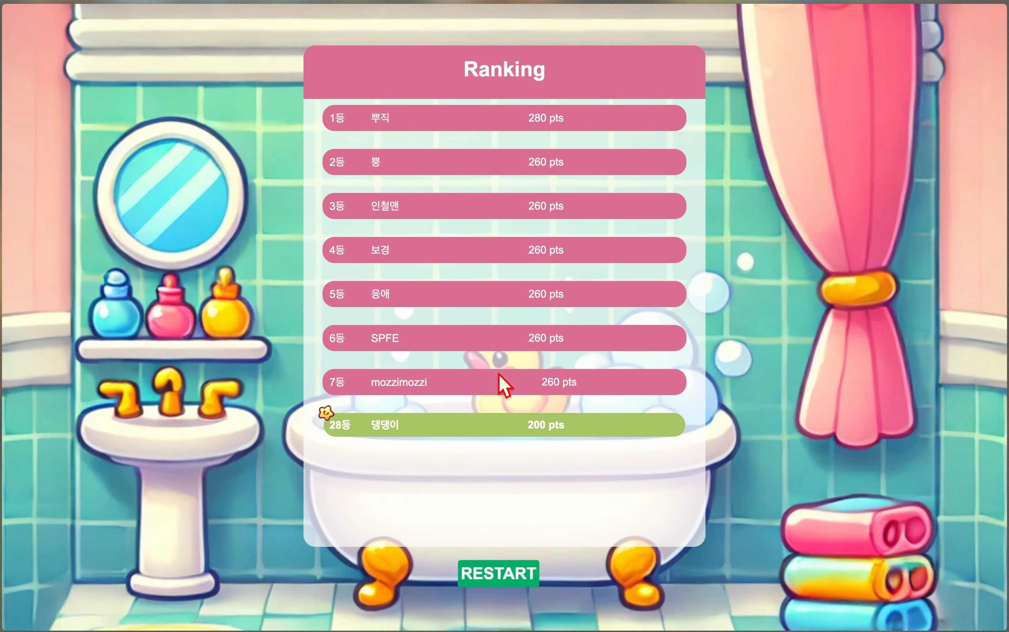 화살표 혹은 스페이스 키를 알맞게 입력하여 점수를 높여보세요!