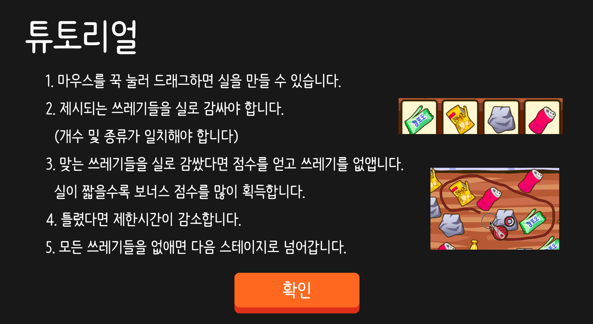 - 각 웨이브마다 제시된 쓰레기 그림을 찾아 한 붓 그리기로 폐곡선을 그려주세요.