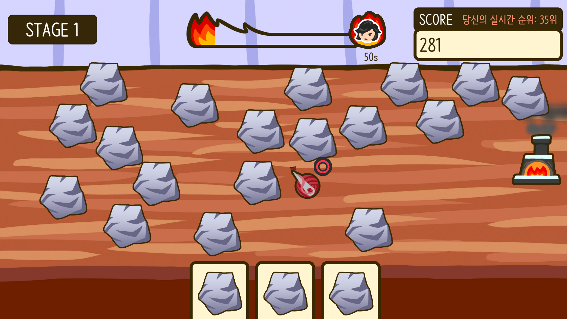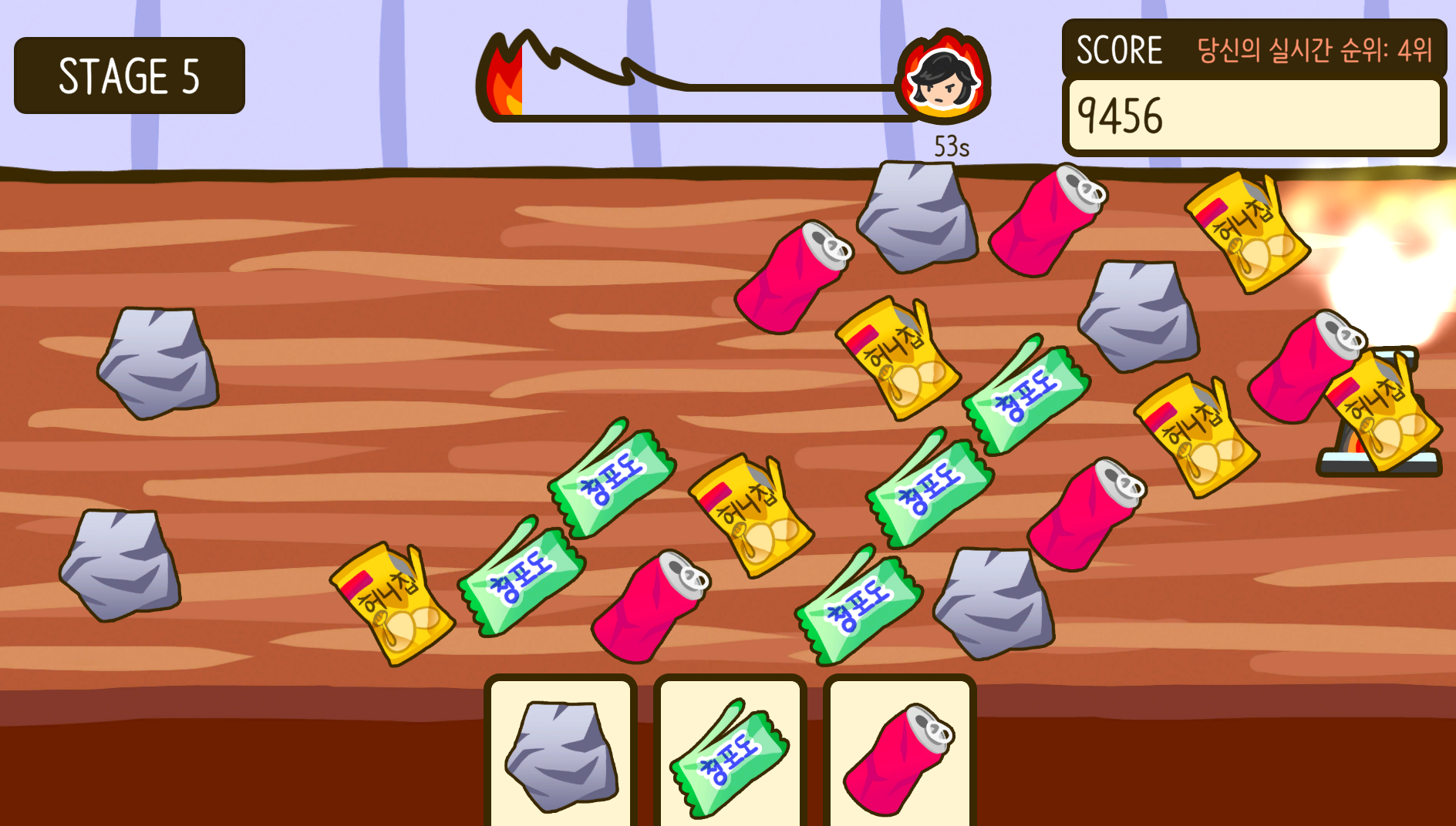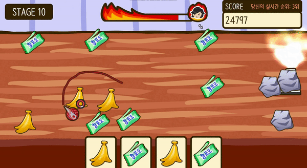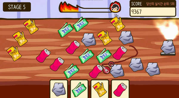 - 내부 영역의 개수와 종류가 일치하면 활활 불에 태워지며 점수를 획득합니다.