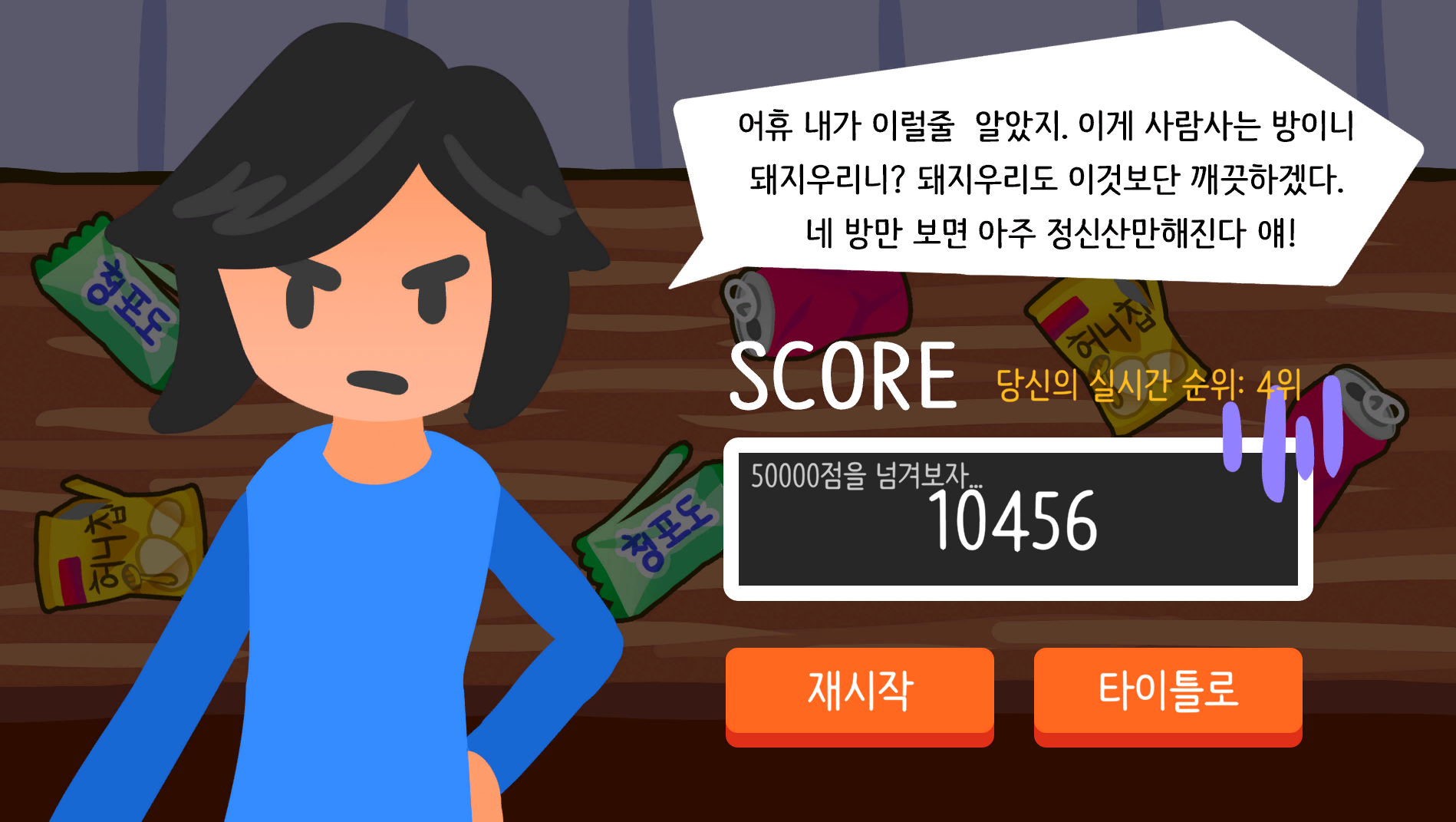 - 타이머 시간 제한이 있습니다. 꾸물거리면 엄마의 불호령이 떨어집니다. 빠른 판단과 액션으로 보너스 점수를 획득하세요. 서두르세요!