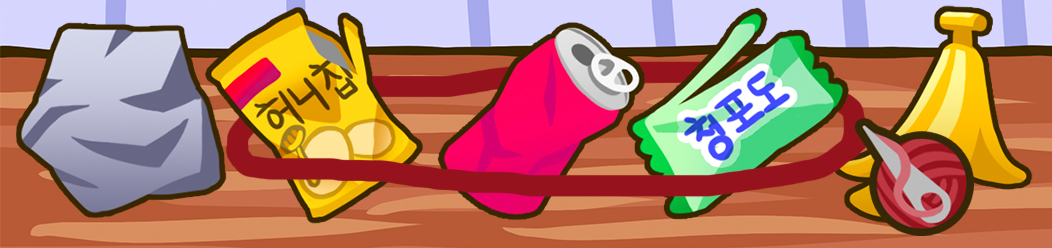 쓰레기를 한 붓 그리기로 모아 버려주세요.