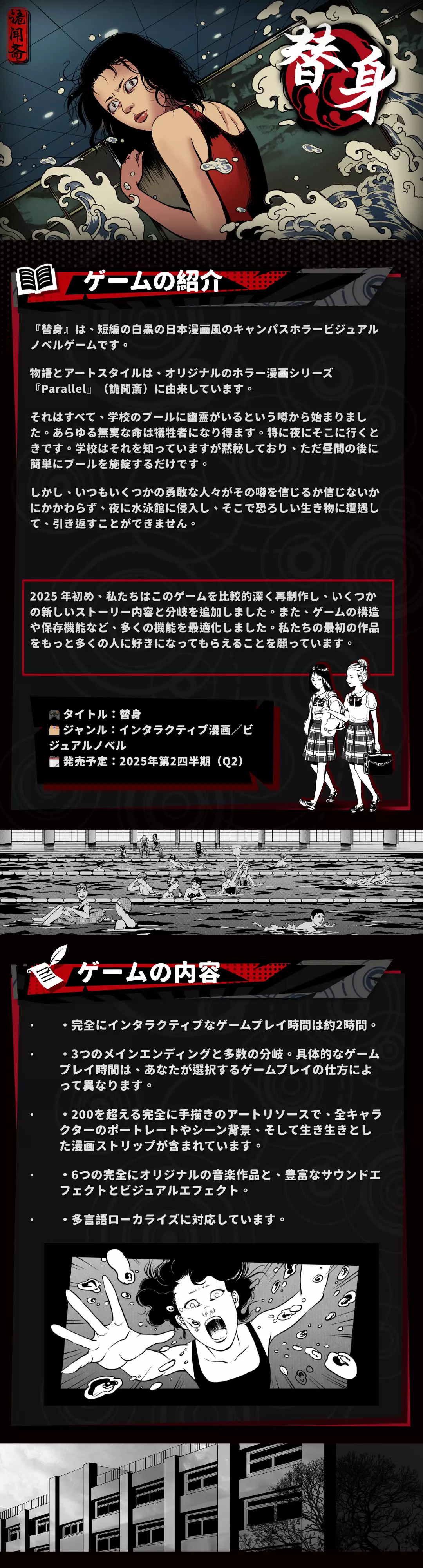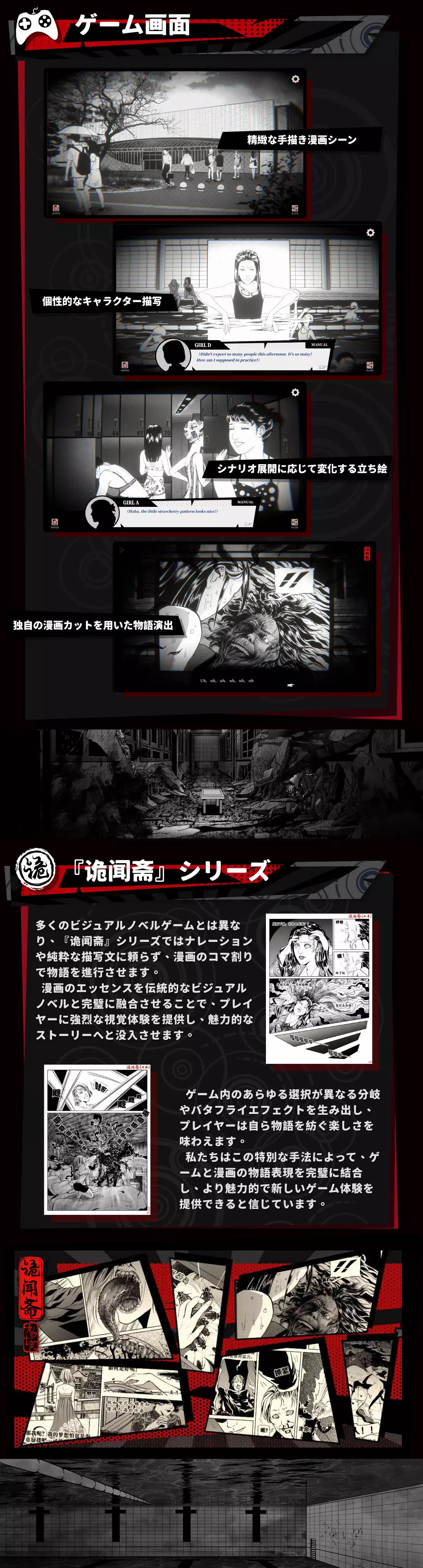 本作は2時間程度でプレイできる完全インタラクティブなゲームです。3つのメインエンディングと複数のストーリーラインが用意されており、実際のゲームプレイ時間は選択次第で異なります。 ゲーム内には200点以上の手描きアート素材を収録しており、キャラクターポートレート、全キャラクターの背景、カラフルなコミックシーンなどが含まれています。 6曲の完全オリジナル楽曲に加え、豊富なサウンドエフェクトとビジュアルエフェクトを搭載し、ゲーム体験を一層充実させています。