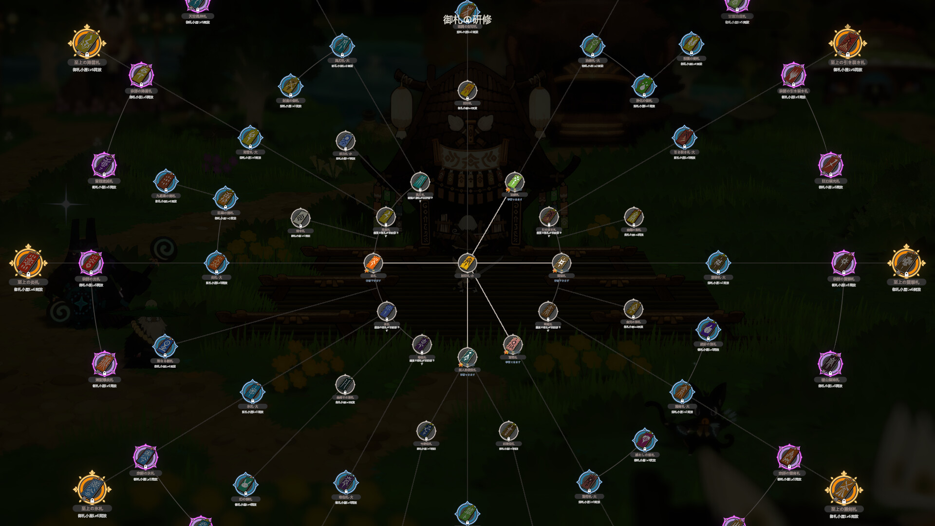 危難から救い出した腕利きの職人たちを招いて、一緒に妖の郷を建設しましょう。食堂や、育成を行う建物が開放できます。妖怪が得意なのは戦いだけではありません。耕作、採掘、料理、さらには御札作りに長けているものもいます。