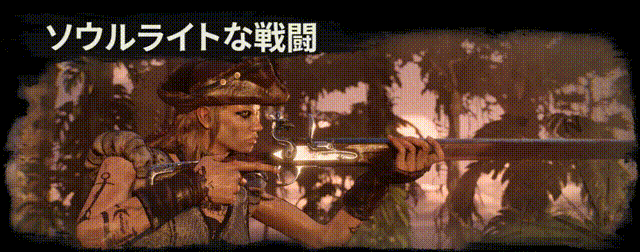 斬り伏せ、撃ち抜き、叩き伏せ、あらゆる手段で道を切り開け。敵の攻撃を受け流し、回避しながら連続攻撃を繰り出し、様々な近接武器や銃火器を使いこなして戦闘を極めよう。サーベル、レイピア、ハルバード、グレートソード、ピストル、マスケット銃など、幅広い武器が用意されている。