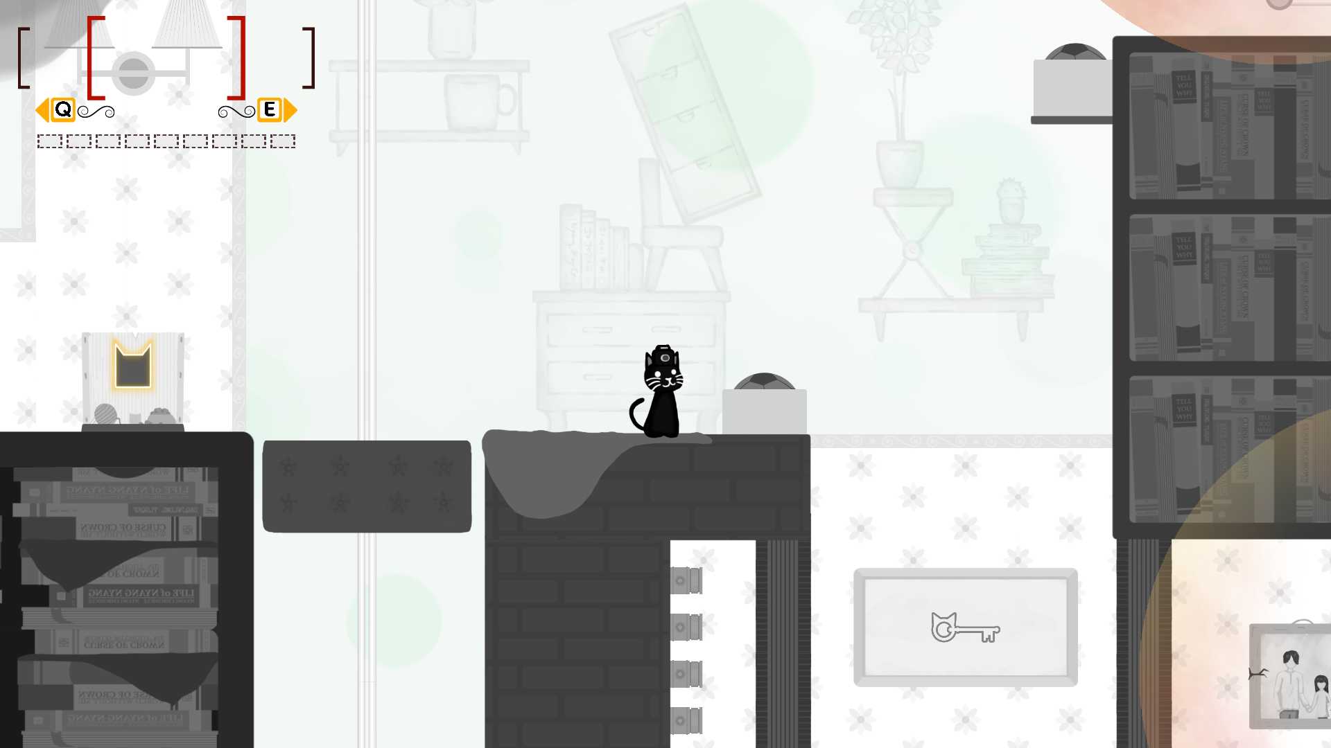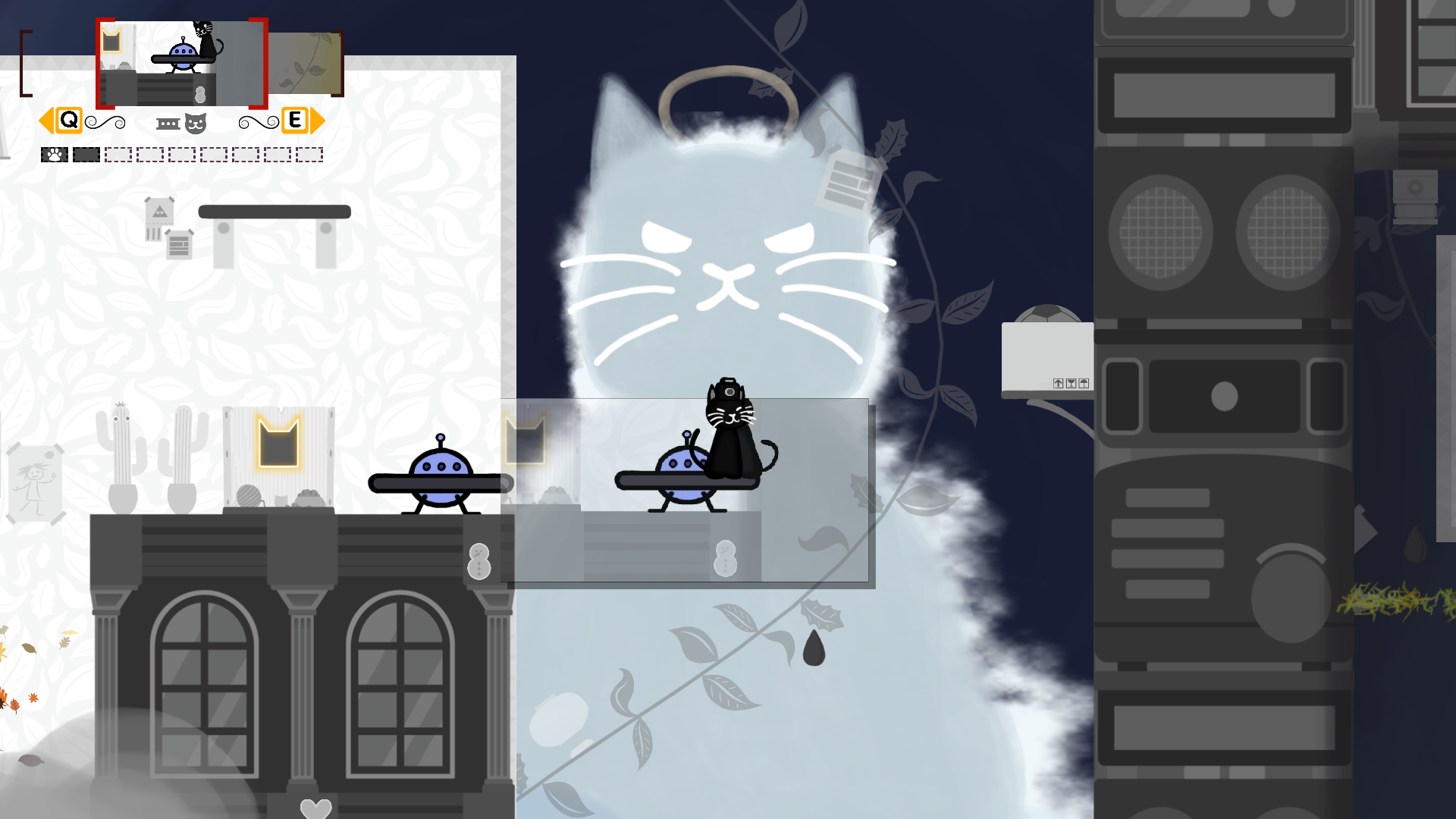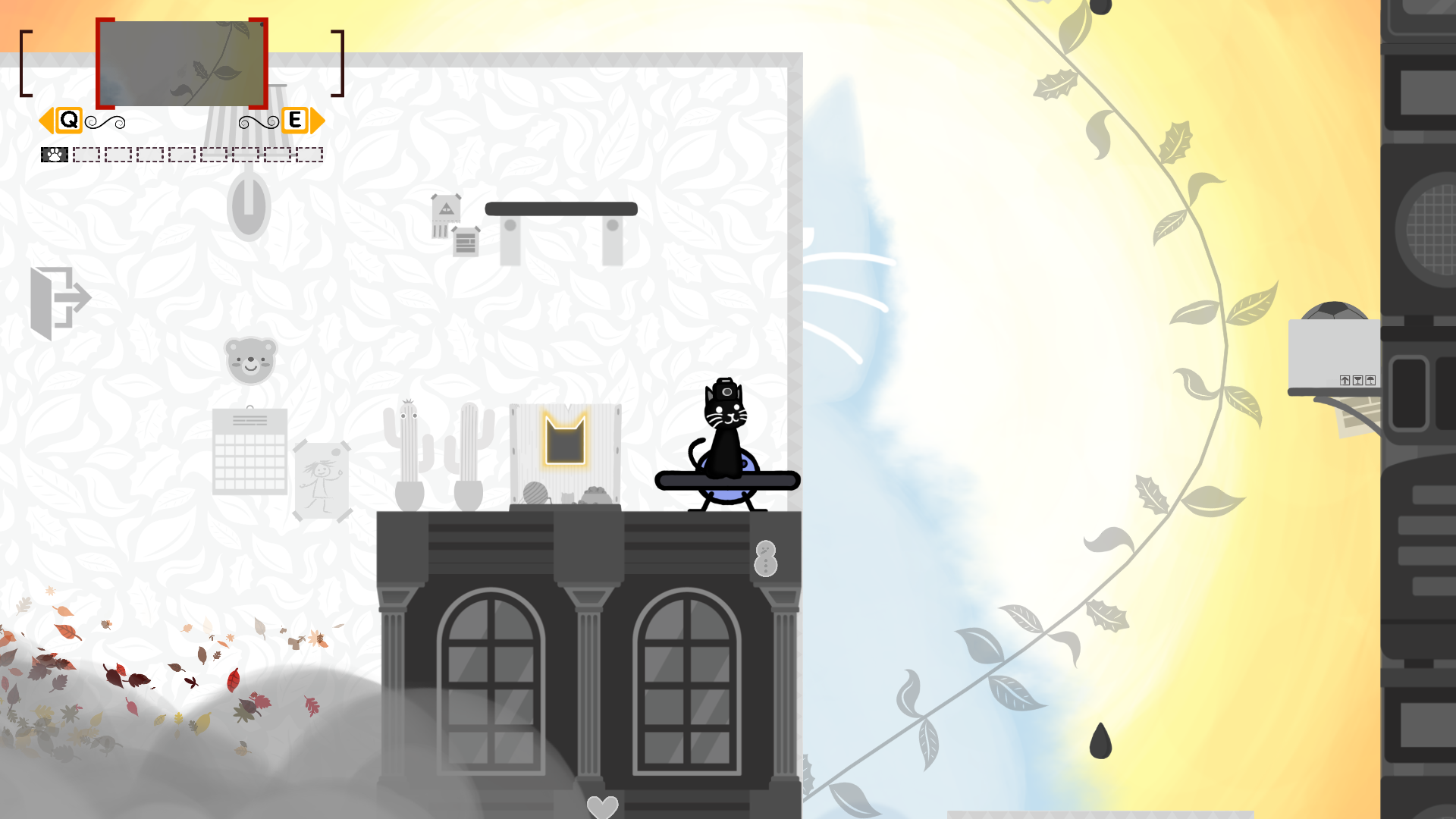 Using the camera on the cat's head, players can take photos of various objects in the game.