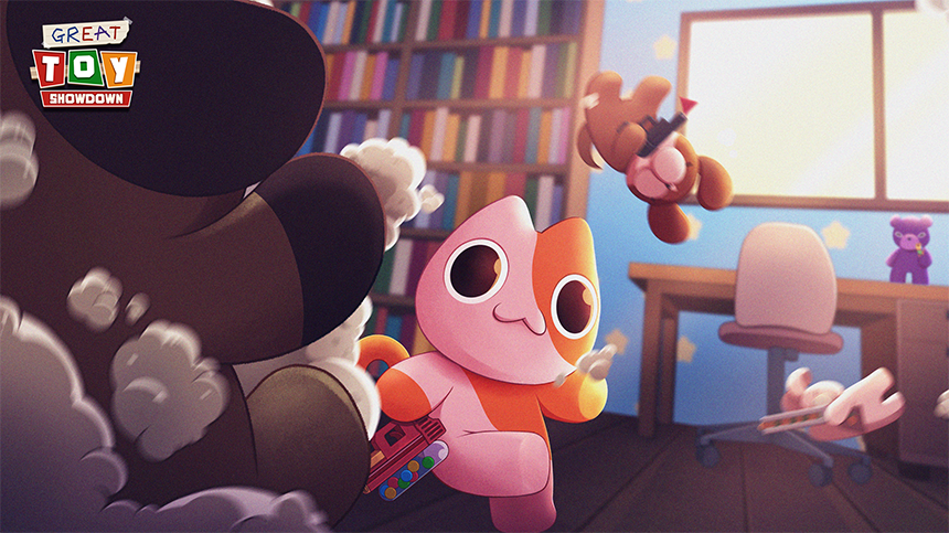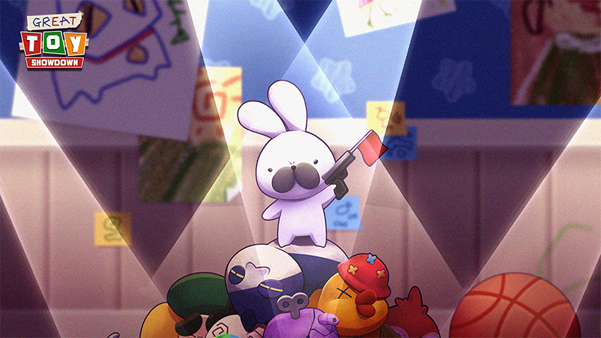 GREAT TOY SHOWDOWNは、8匹のトイ(動物ぬいぐるみ)がぶつかり合う、戦略的なカジュアルシューティングのチーム対戦ゲームです。