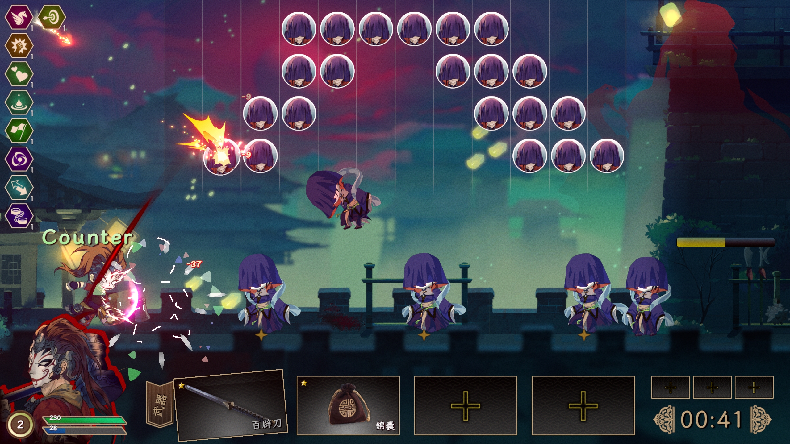 This is a roguelike rhythm action game that requires you to block and counter (accurate block)