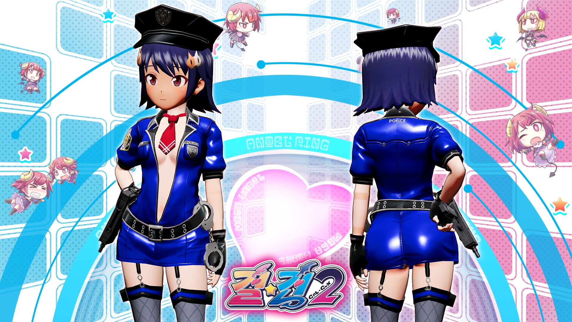 衣装選択に衣装「ギリギリポリス」、アクセサリ「ポリスキャップ」、アクセサリ「サブマシンガン」、アイテム「恋の指名手配書」が追加されるダウンロードコンテンツです。