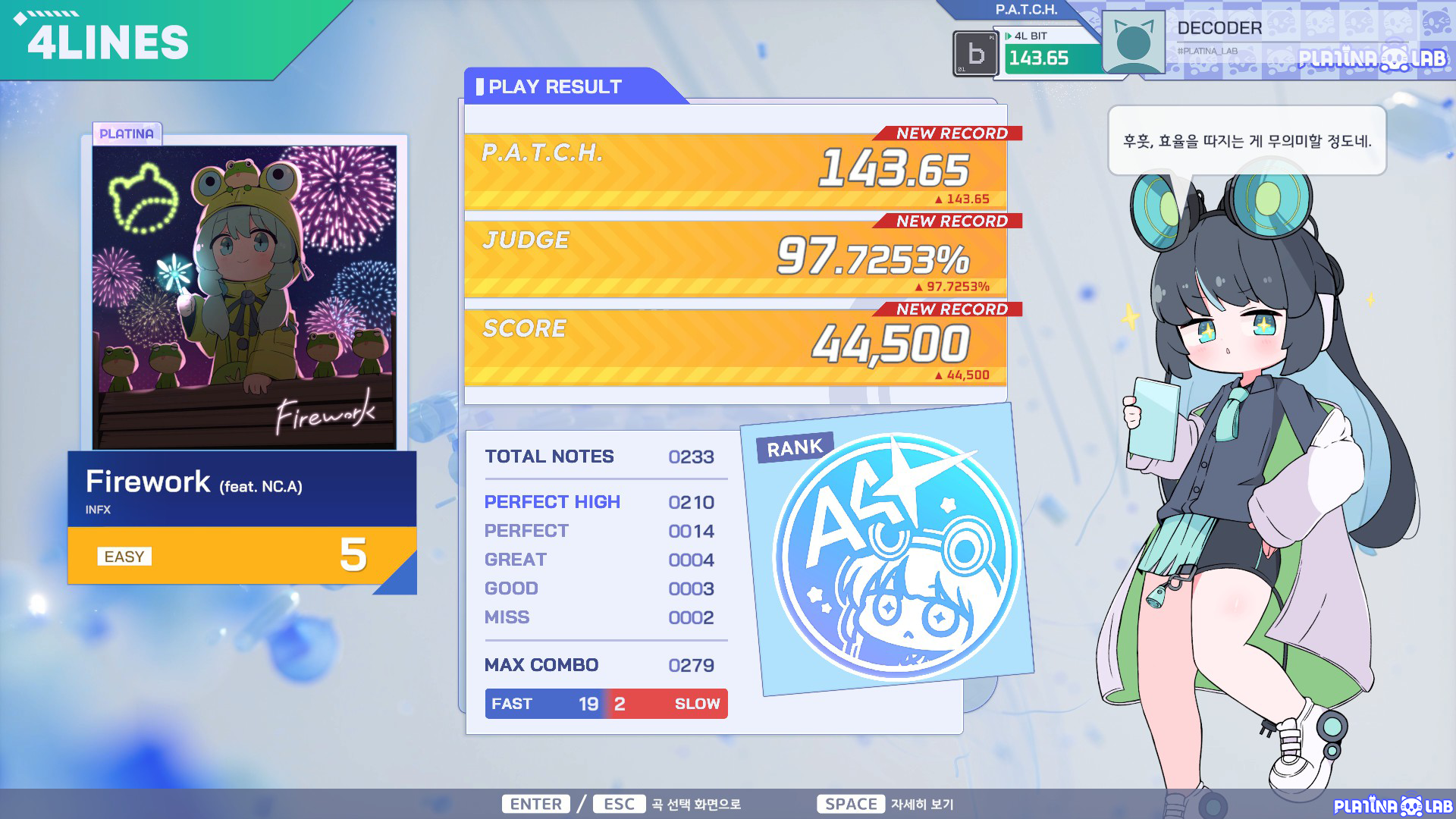 'PLATiNA :: LAB'은 전통적인 노트 낙하형(Top-Down) 플레이 방식으로 즐기는 리듬 게임입니다.