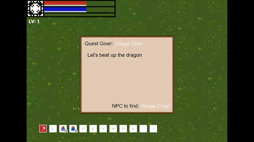 이 게임은 싱글 플레이 RPG로, 용사가 몬스터를 무찌르면서 성장해 마을사람들을 괴롭히는 드래곤을 무찌르고 마을을 구하는 게임입니다. 하지만 이 마을에는 뭔가 석연치 않은 구석이 있는데... 과연 어떠한 비밀이 숨어 있을지, 용사와 함께 모험을 하며 진실의 열쇠고리를 찾아내봅시다!!
