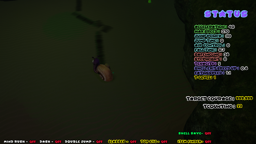 • 세이브 시에는 달팽이에 붙어 있는 아이템만 저장되며,그 외의 것들은 모두 초기화됩니다.