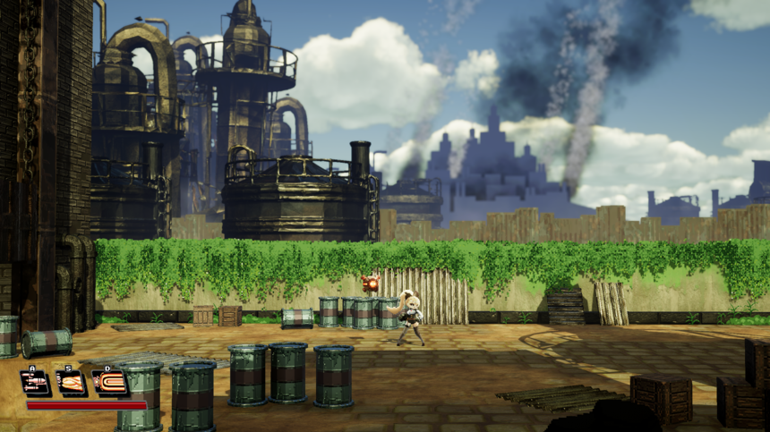 [Rusty Vein]은 도트 캐릭터와 3D 배경이 조합된 2.5D 액션 어드벤처 게임으로, 주인공 '레인'은 인형 군단에게 점령당한 마을의 성을 되찾기 위해 여정을 떠나게 됩니다. 전기와 화염을 사용하는 건틀릿을 착용해 적들을 물리치며 궁극기 사용 시 반대 속성으로 전환돼 전투를 이어갑니다.