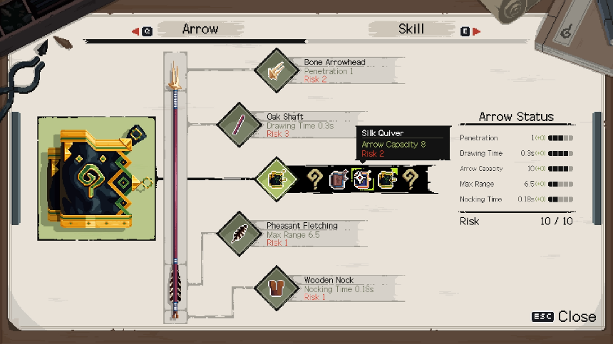 자신의 손에 맞는 화살을 조합하고, 기술을 선택하여 전투를 준비하세요.