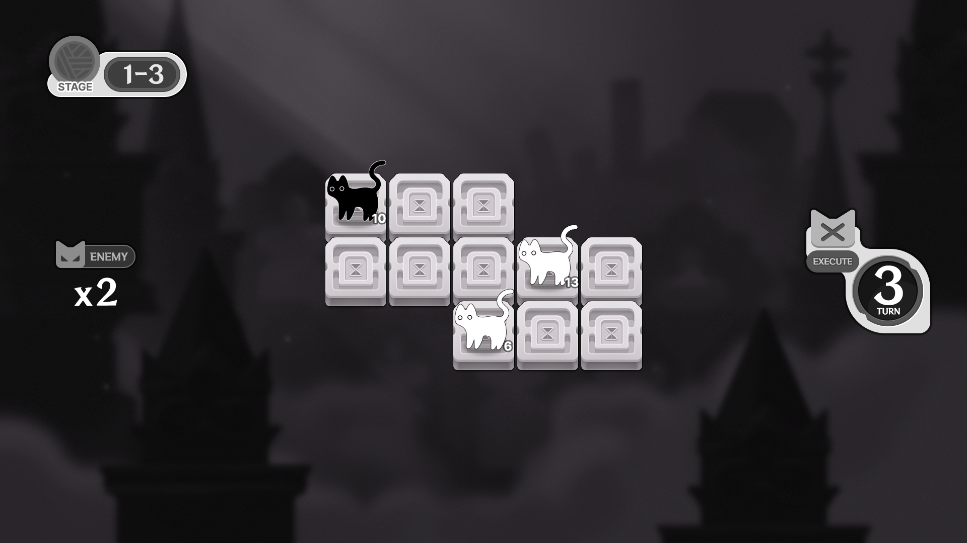 플레이어가 행동할 때마다 턴을 소모하고, 정해진 턴이 지나면 맵 위에서 가장 체력이 높은 유닛이 제거됩니다.