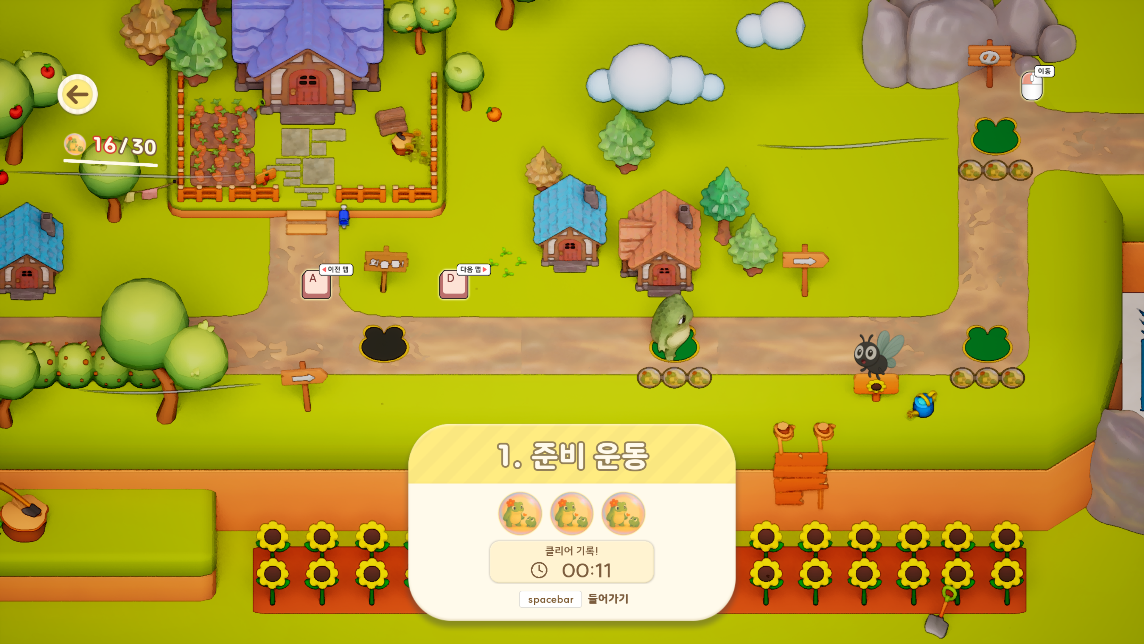 “올라락! 깨구락!”은 한국 전래동화 ‘청개구리 설화’에서 영감을 받아 그 이후의 이야기를 그린 3D 플랫폼 기반의 샌드박스 게임입니다.