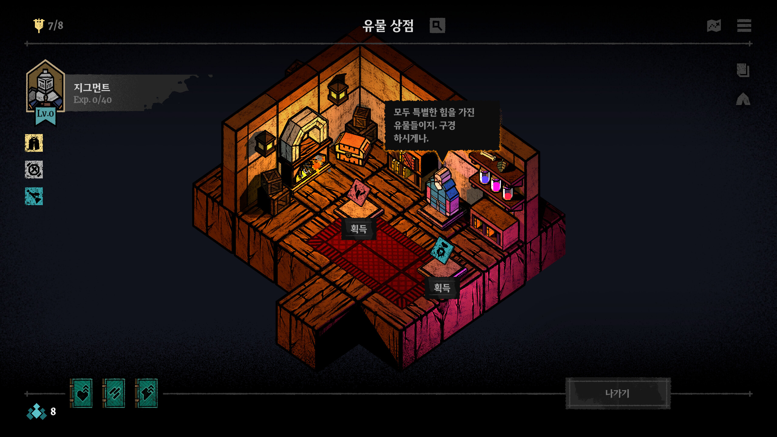이 험난한 세계를 탐험하는 당신의 원정은 실패할 수도 있습니다. 그러나 한 번의 실패는 끝이 아니며, 오히려 무한한 가능성의 시작입니다. 100종 이상의 용병과 특성, 30종 이상의 유물, 20종 이상의 카드로 매번 다른 여정을 경험하게 됩니다.