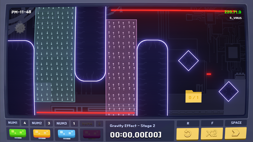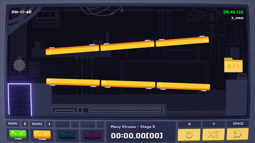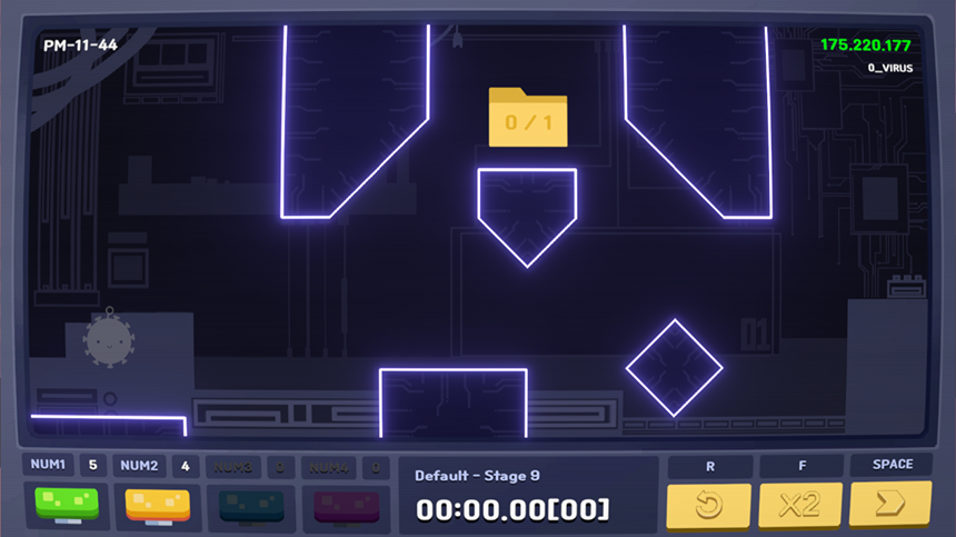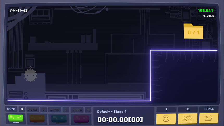 <컴퓨터 바이러스>는 플레이어가 해커가 되어 여러 구역을 해킹해 나가는 컨셉으로, 물리 시뮬레이션이 주요 기믹으로 이루어져 있는 퍼즐 게임입니다.