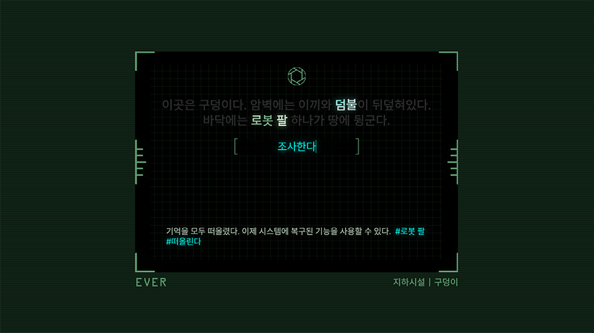 <EVER>는 플레이어가 직접 텍스트를 탐색하고, 이야기를 발견하는 새로운 방식의 텍스트 어드벤처 게임입니다.